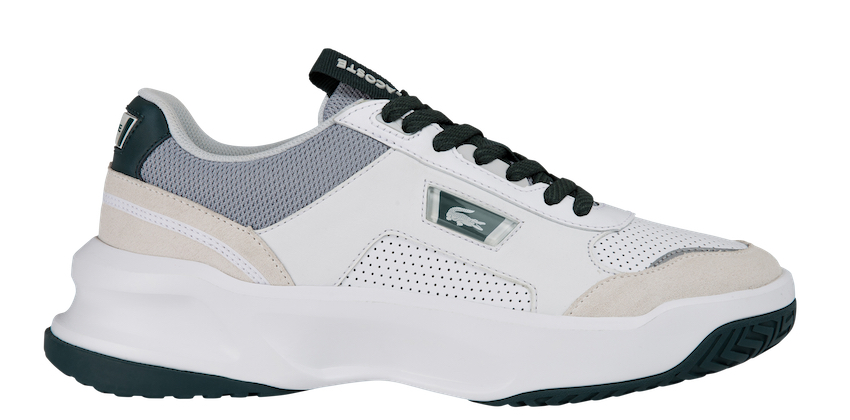 Lastly, Lacoste’s Run Breaker model is designed to handle the outdoors and running. This offering is dressed in white, blue, and red tones. The sneaker reinvents sportswear and trekking design codes.