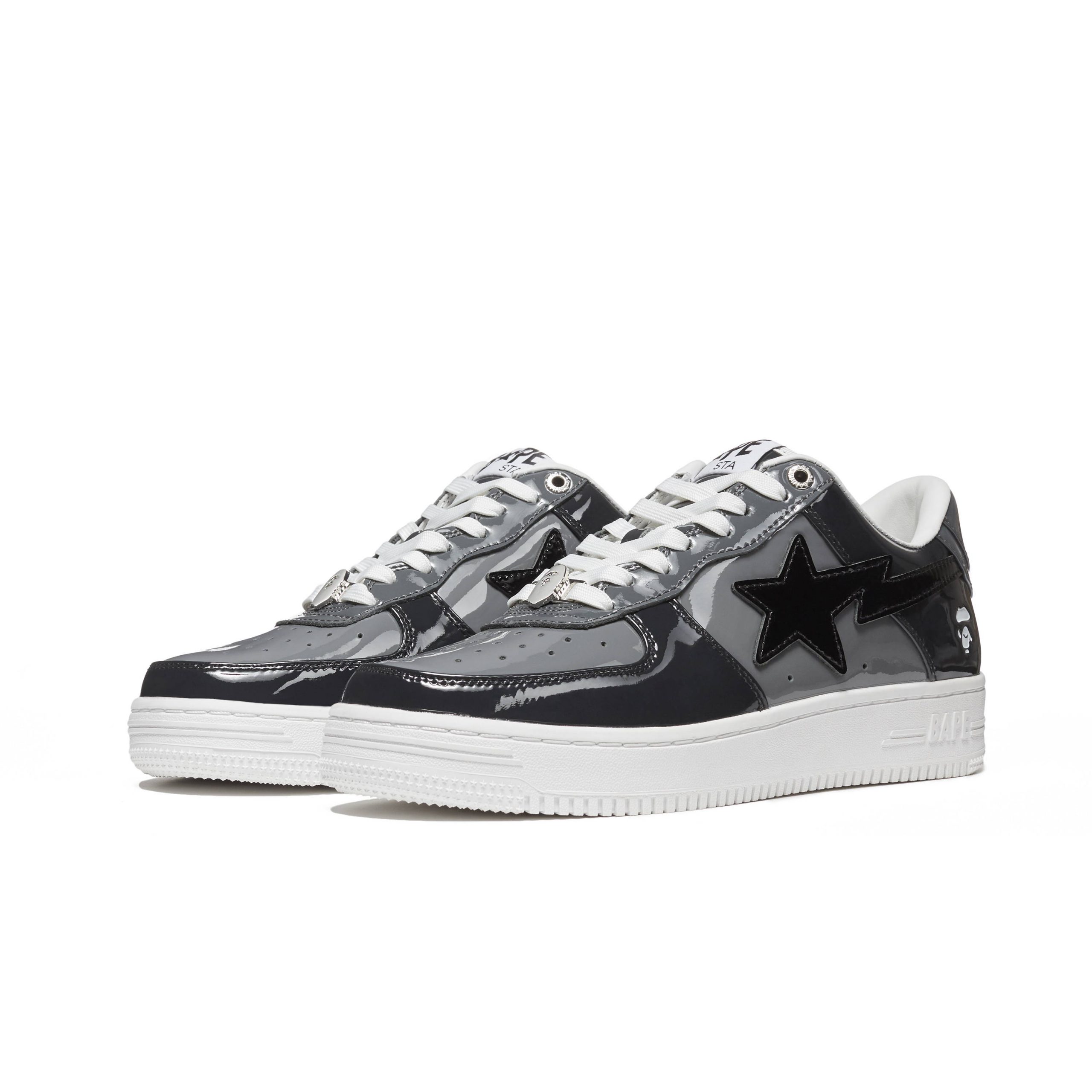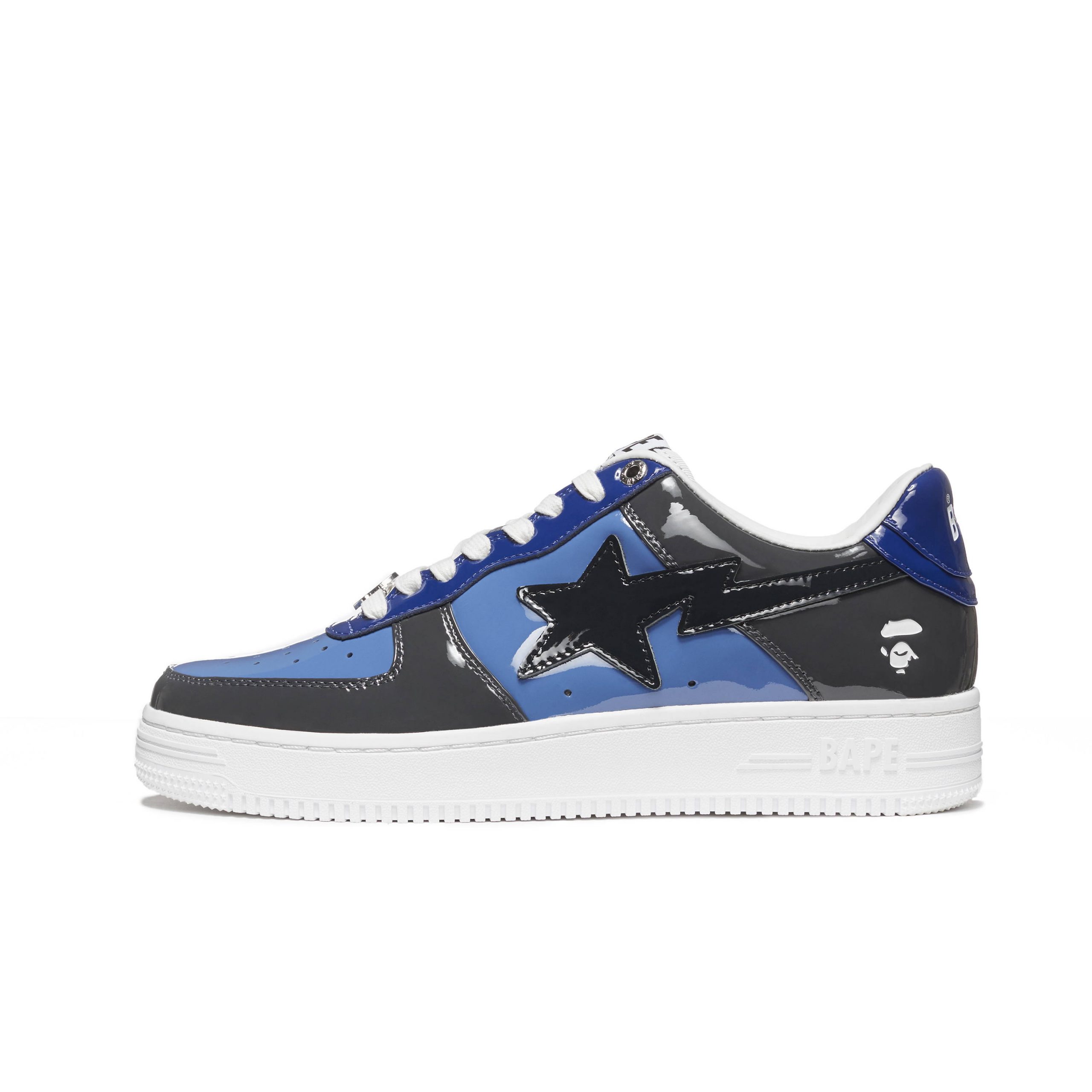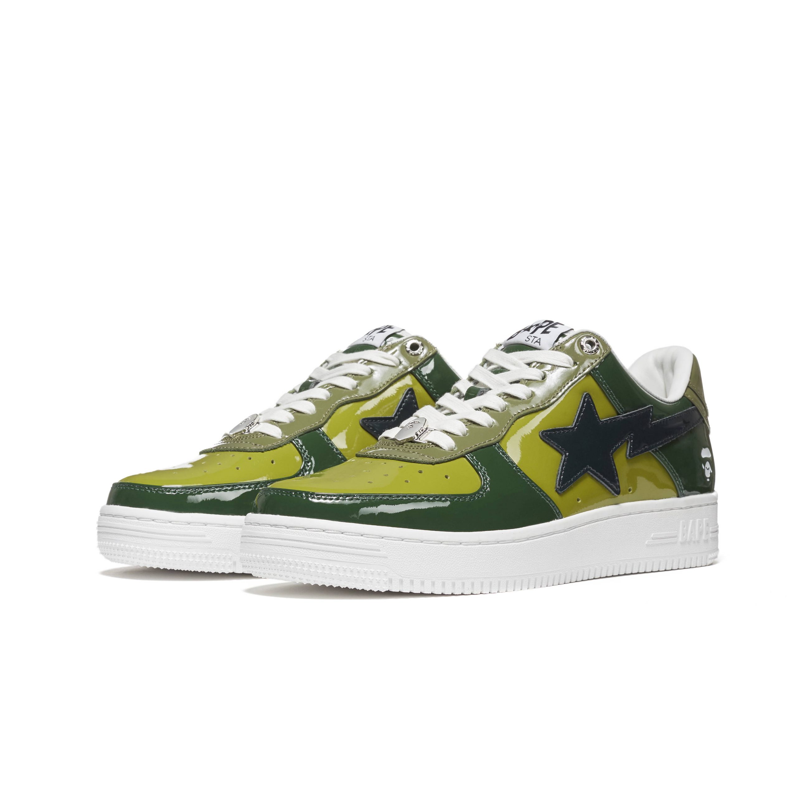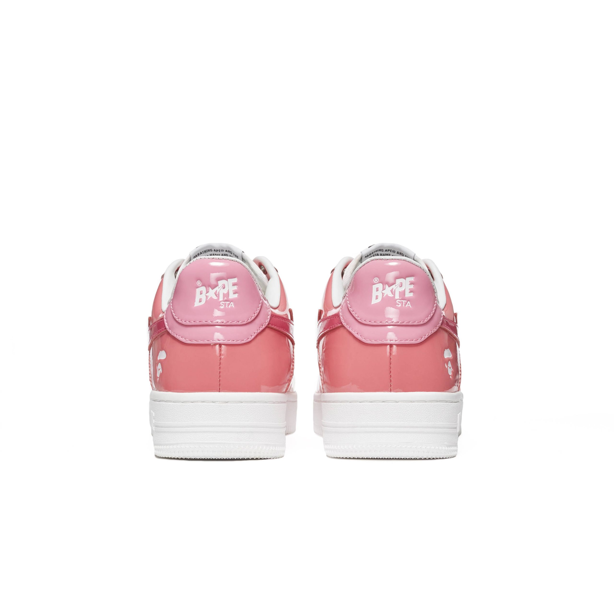 The shoe itself is comprised of patent leather, which is apparent on the upper, heel and logo. The collection also features new colorways inspired by the various camo prints used by BAPE throughout the years.. Wearers can also choose various combinations including calm coloring and POP coloring. The shiny leather provides a two-toned array of colors from black and blue to pink and purple to other primaries in between that catch the eye. The APE head takes on the rear quarter panel of each pair.