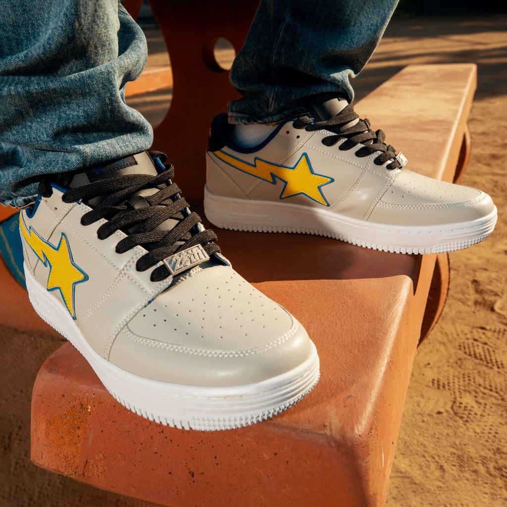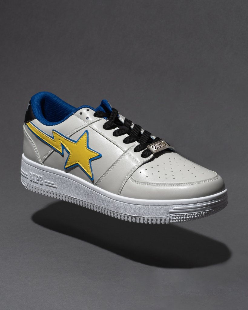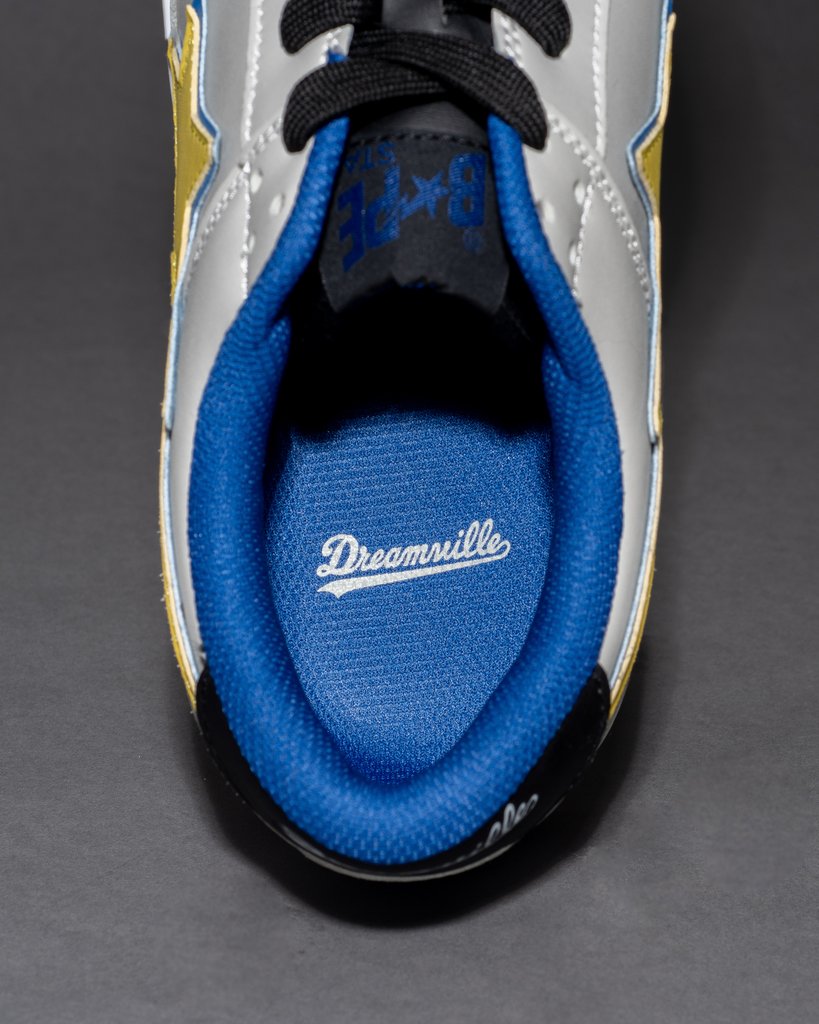 A Bathing Ape has been releasing various iterations of the BAPE STA this year in celebration of the model’s 20th anniversary. This Dreamville edition, made in collaboration with one of today’s hottest and most successful music collectives, features a yellow STA logo on the shoe’s light gray and blue body. The label name is engraved on the backstay, as well as printed on the insole.