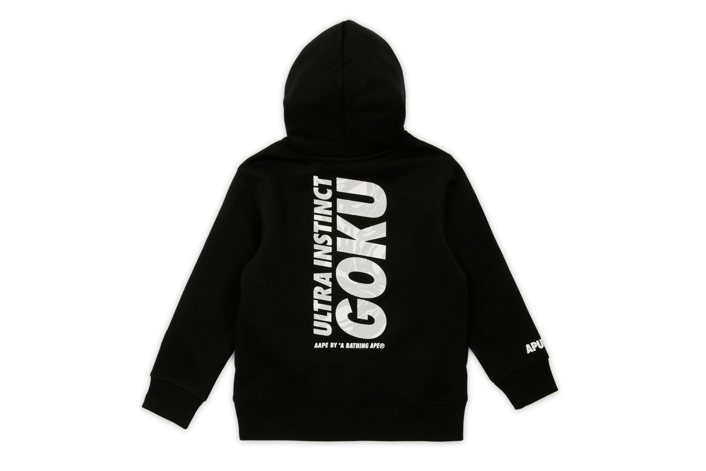 The all-black apparel lineup includes pull-over and zip-up hoodies, crewnecks, and t-shirts all emblazoned with graphics of Dragon Ball Super characters such as Goku, Frieza, Vegeta, and Vegito. The collection also features Aape’s signatures motifs: the moon-face logo, AAPE NOW slogan, and Aape Camo print. Each piece will be available in adult and kid’s sizing.