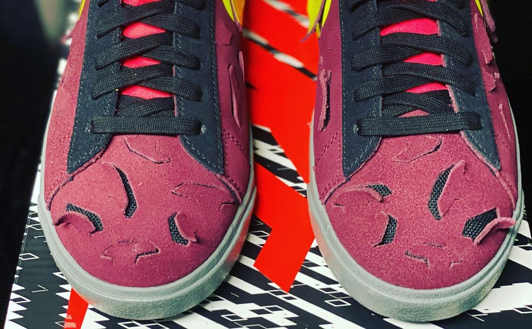 Following teasers by Errolson Hugh and Max Holloway, we now have a detailed look at the ACRONYM x Nike Blazer Low in the “Night Maroon” colorway.