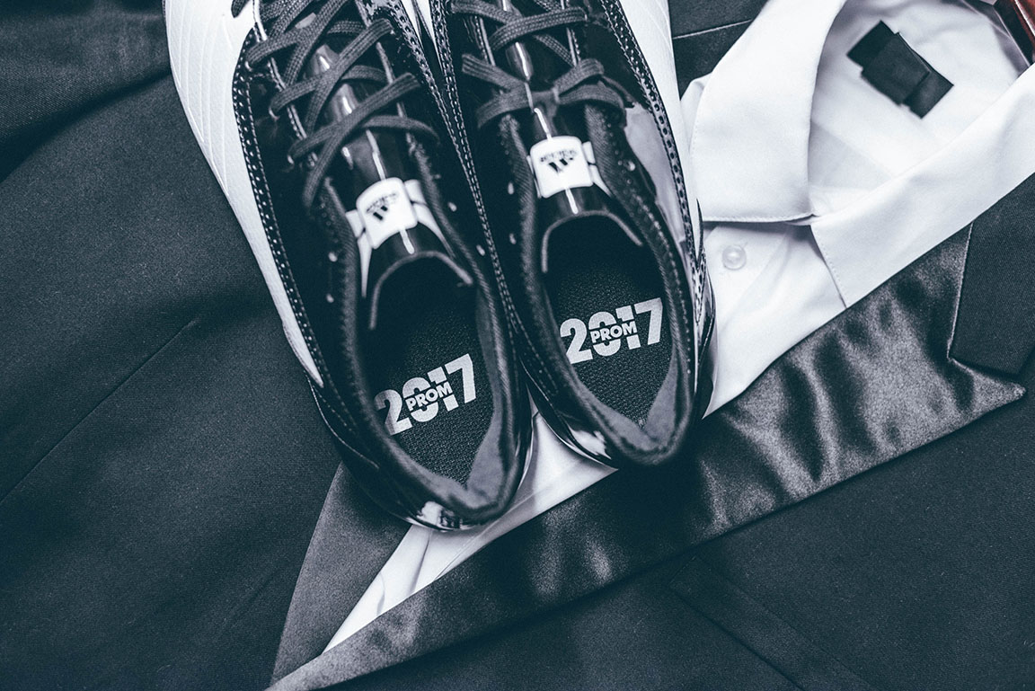 - The Tux Cleat – To cap off the collection, and for those players who want to celebrate every day like it’s a special occasion on the gridiron, the tux theme speaks for itself with a black and white patent leather tuxedo look.
