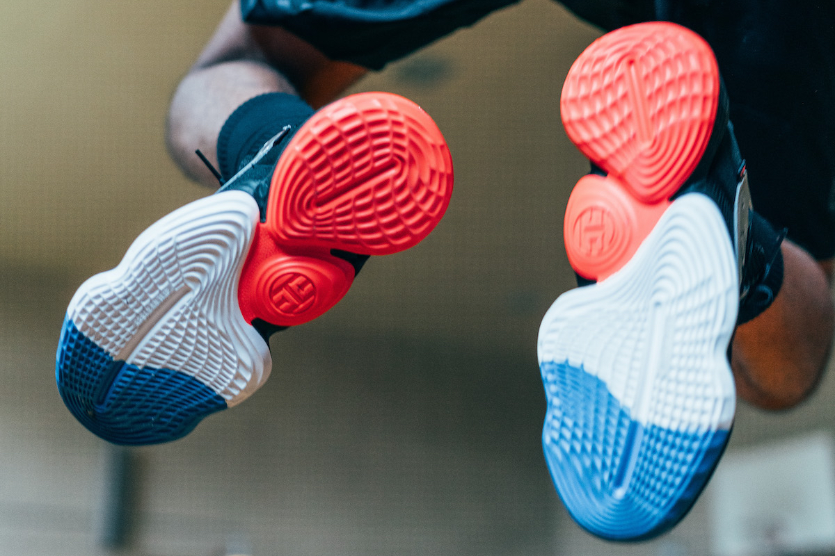 LIGHTSTRIKE is a new super-light midsole that provides the perfect balance of lightweight cushioning and on-court responsiveness. It ensures full movement support and improved step-in comfort, designed with Harden’s elite quickness and the demands of the game in mind. Other features of the Harden Vol. 4 include an elastic band that stretches across the midfoot, providing added stability, and an updated traction pattern on the outsole for improved grip.
