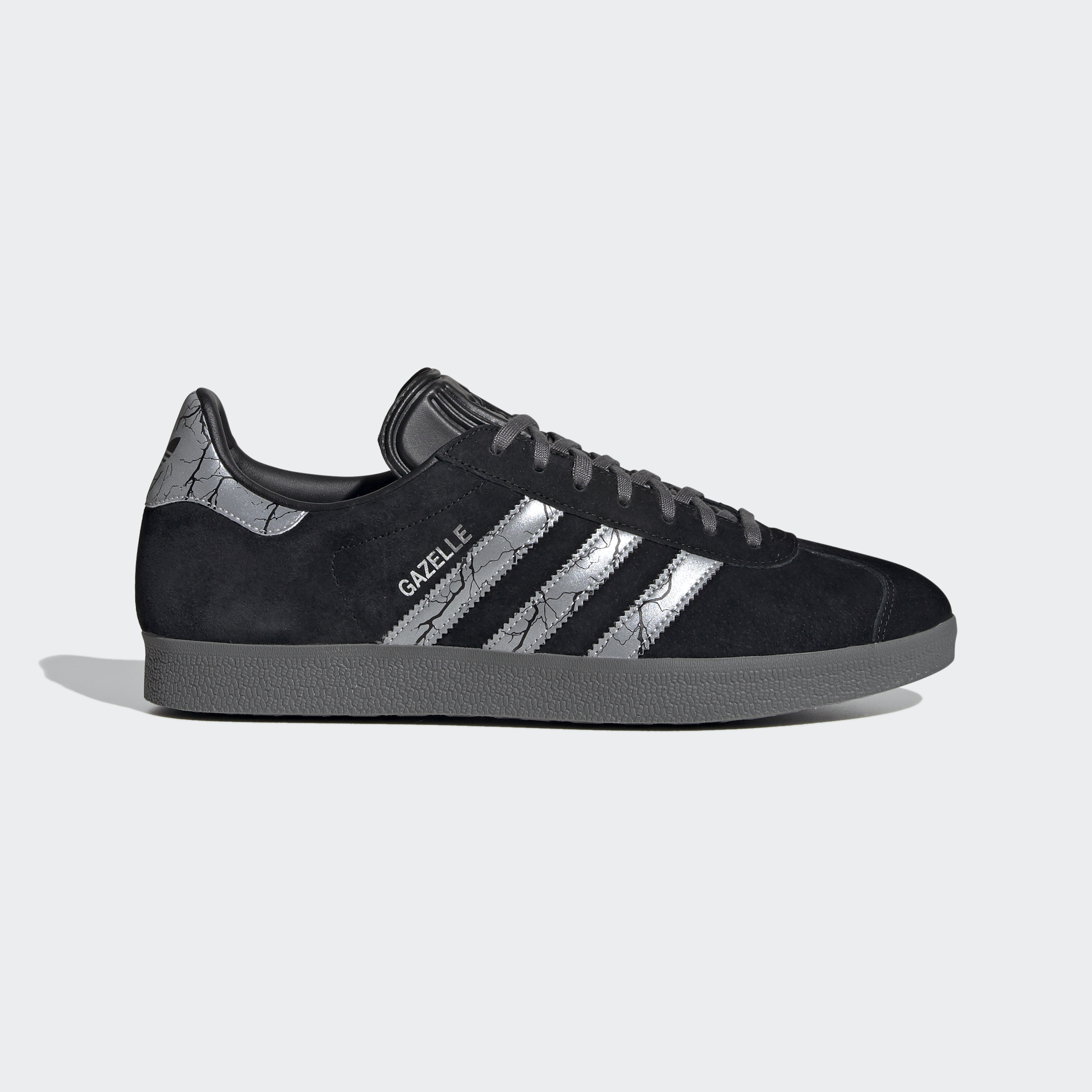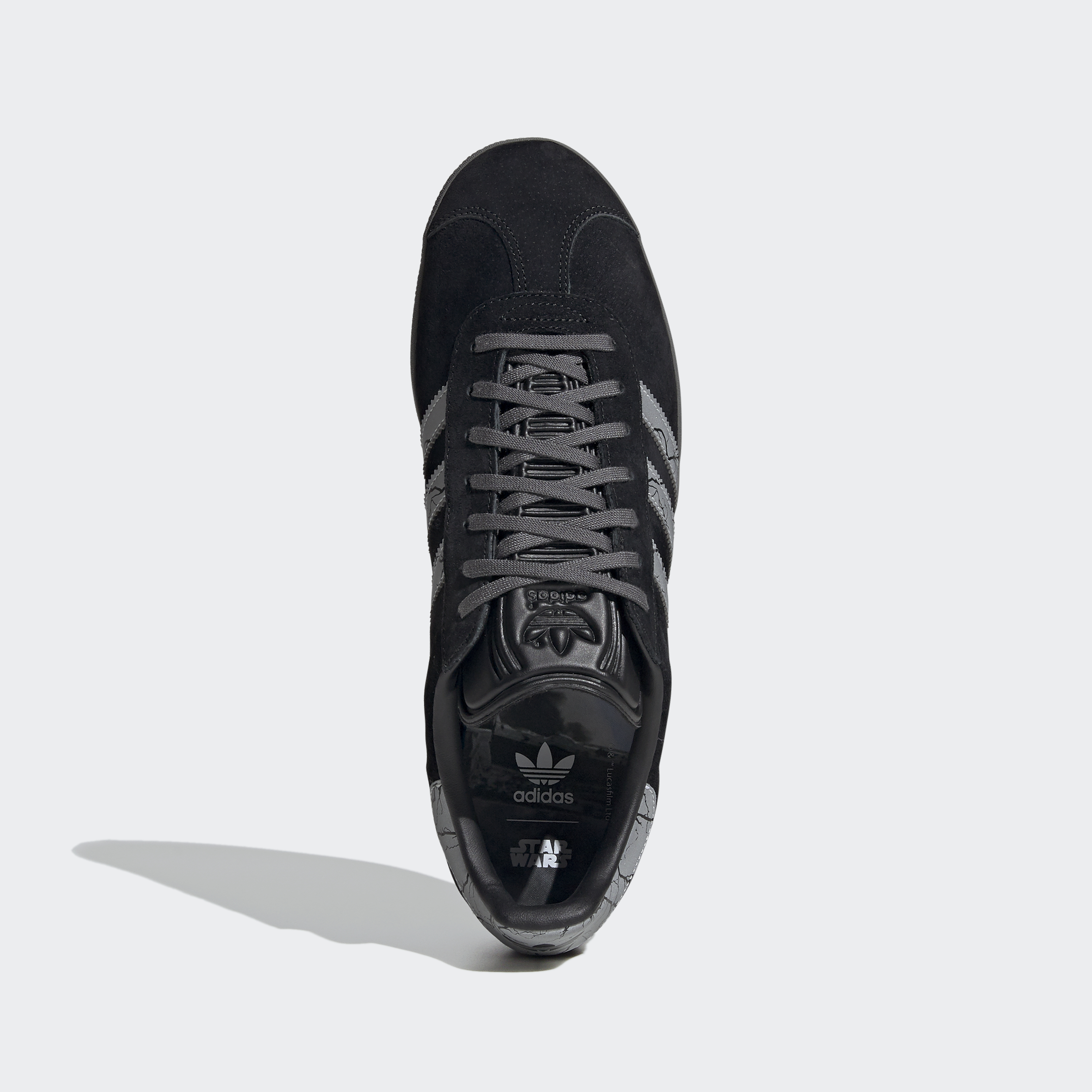 The entire collection is rounded out by an adidas Gazelle themed after the Darksaber, an evil counterpart to the Lightsaber that was seen wielded by Moff Gideon at the end of Season 1. Echoing the blade it’s named after, the shoe reflects silvery light around its jet-black upper through 3M paneling on the shoe’s Three Stripes branding.