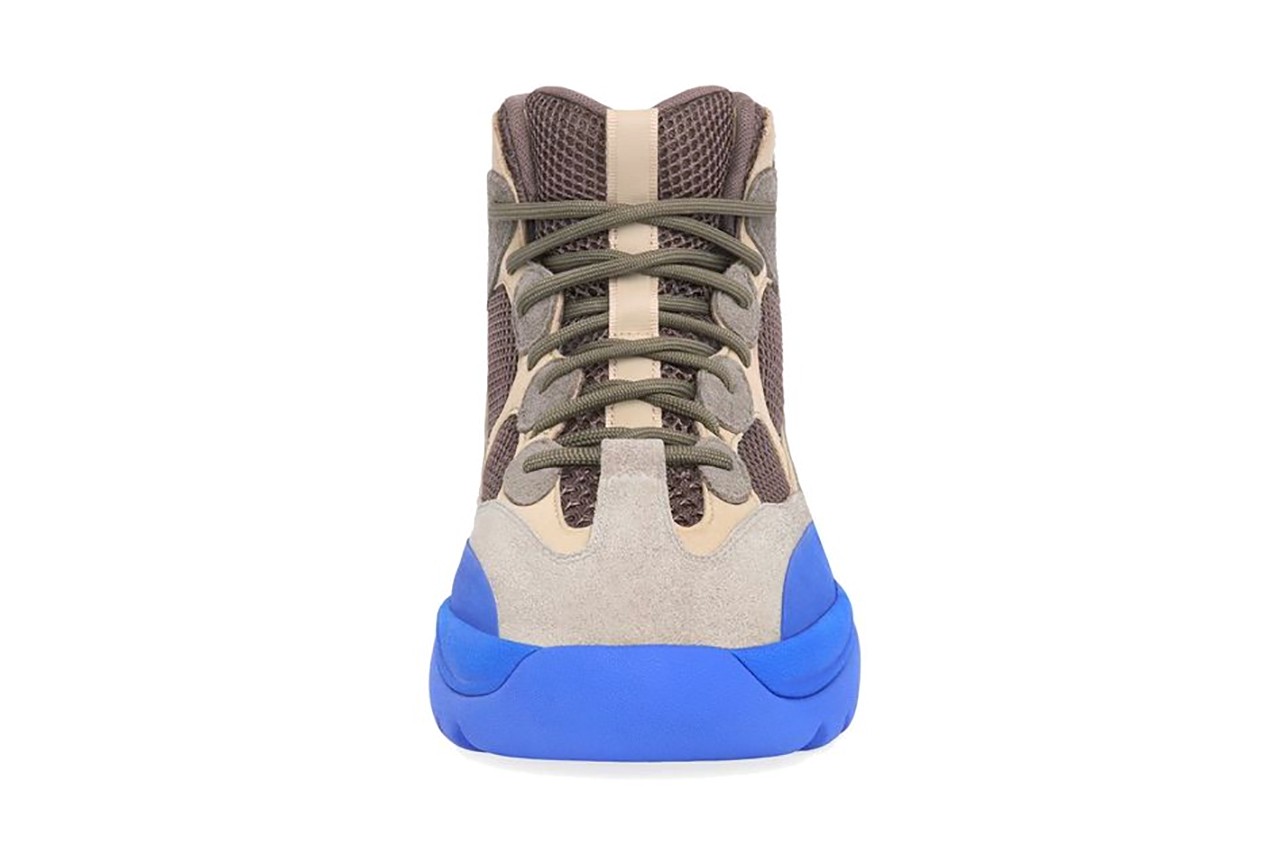 The adidas YZY DSRT BT is finally set to return after a years-long hiatus. While previous colorways stuck strictly to earth tones, the new “Taupe Blue” model will come with an extremely bold blue outsole and mudguard overlay. The color matches the bright blue found on Kanye’s Grammy-winning gospel album, “Jesus is King.” West has also been repeatedly seen in an oversized matching blue hoodie, so the shoe can be seen as a direct reference to his personal style. Contrasting the shock of color is the earth-toned mesh, suede, and leather upper, which will come in a pale pebble brown and tan leather.