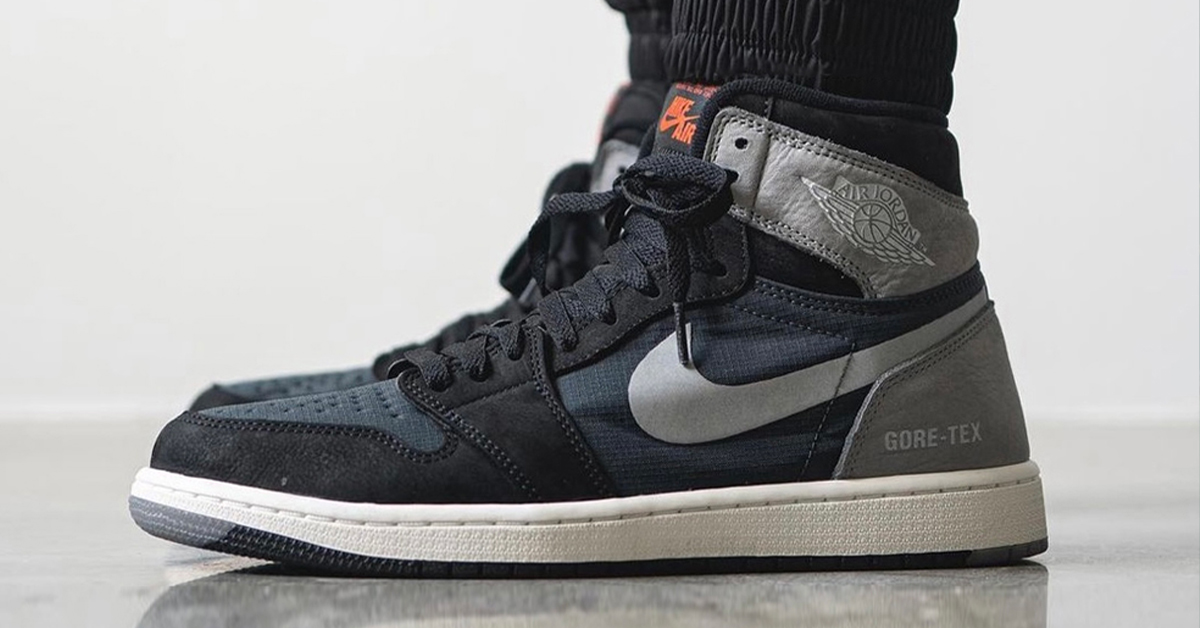 The first colorway will echo the Air Jordan 1 “Shadow” with grey leather heel and wing paneling giving way to a silver 3M Swoosh, black upper, and sail midsole. A second colorway will follow in a Sail-based color scheme. Both colorways feature contrasting GORE-TEX branding at the heel.