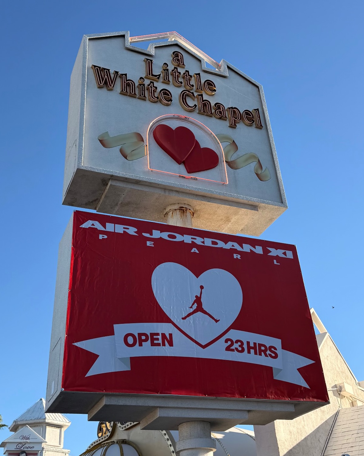 Update (10/24/25): The Air Jordan 11 “Pearl” will release early in Las Vegas during ComplexCon weekend. A pop-up has been spotted at A Little White Wedding Chapel, tying into the shoe’s “Singles Day” theme. The “City Pack” colorways will also make their debut this weekend at ComplexCon. Photo via Jordan Brand’s Samantha Baker: