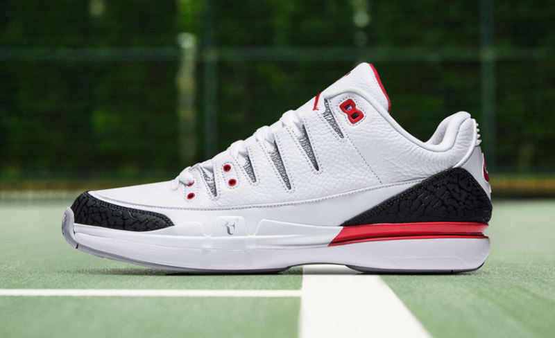 Jordan Brand reconnects with Roger Federer for another Nike Zoom Vapor colorway inspired by the Fire Red Air Jordan 3. The Vapor Tour 9 is given an AJ 3 twist alongside, Fire Red details that follow throughout the entire sneaker. The Nike Zoom Vapor RF x Air Jordan 3 will retail at $200 and will release at the RF19 POP UP located inside KITH in SOHO NY from Aug 23 to 27th.