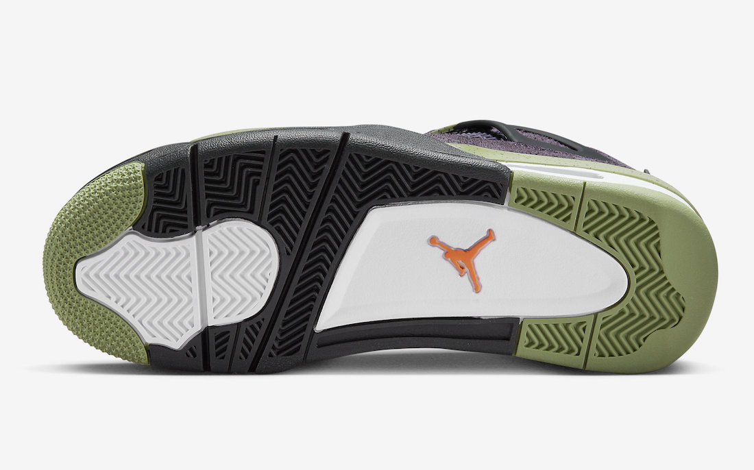 This Air Jordan 4 is reminiscent of the purple F&F Travis Scott 4s. The upper comes dressed in a rich purple suede paired with hits of Safety Orange on the Jumpman tongue tag branding and on the inside of the tongue. The wings and heel tabs come in black, while the eyelets and midsoles have a greenish grey speckled design for some retro ACG vibes.
