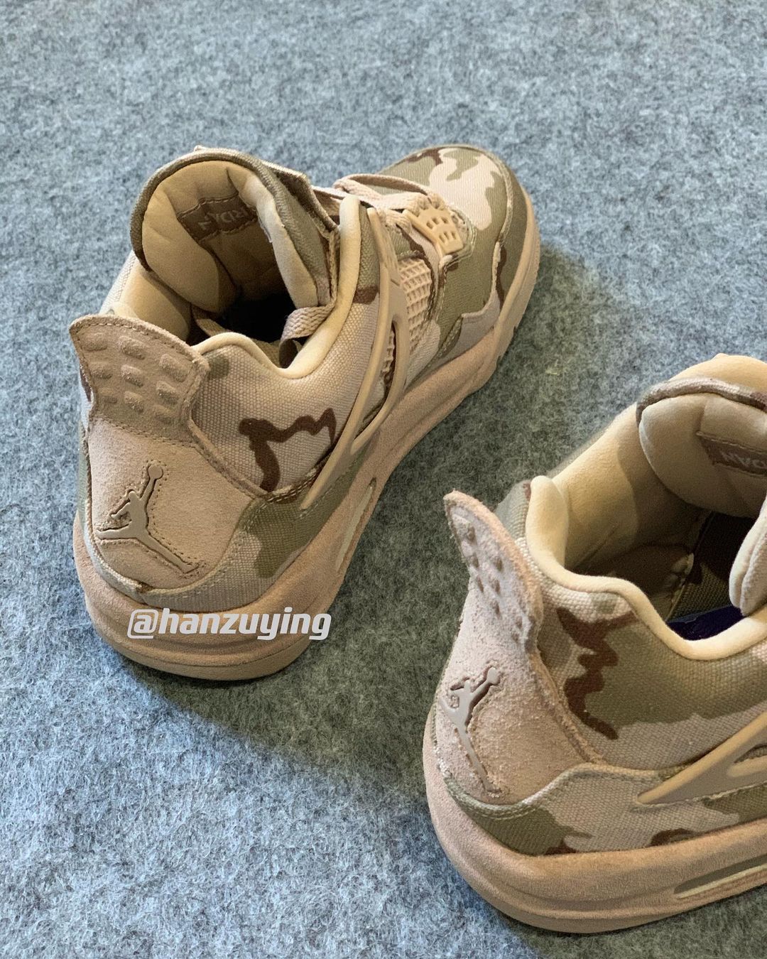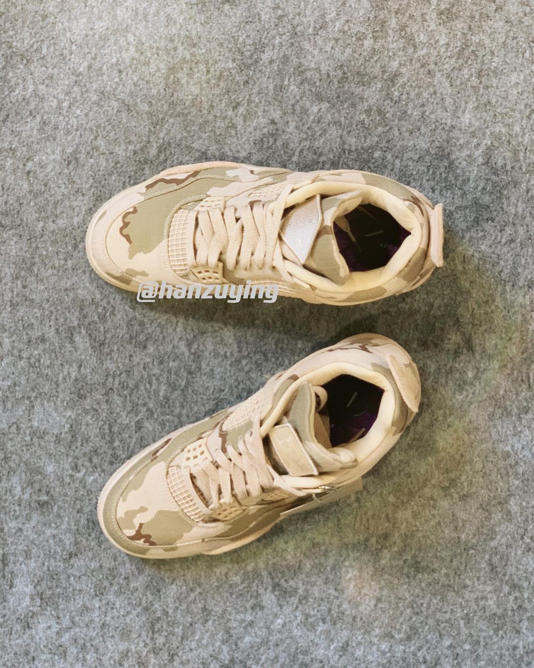For this collab, the LA stylist, model, and designer gives the AJ4 a desert camo makeover. The uppers are made from a ripstop textile, with textured suede hits on the midsoles and heel panels. Sandy beige tones complete the desert look, found on the side panel netting, heel panels, sole units, and lace locks. Additional features include a velcro patch on the tongue and purple quilted insoles marked with Aleali’s “A” logo.