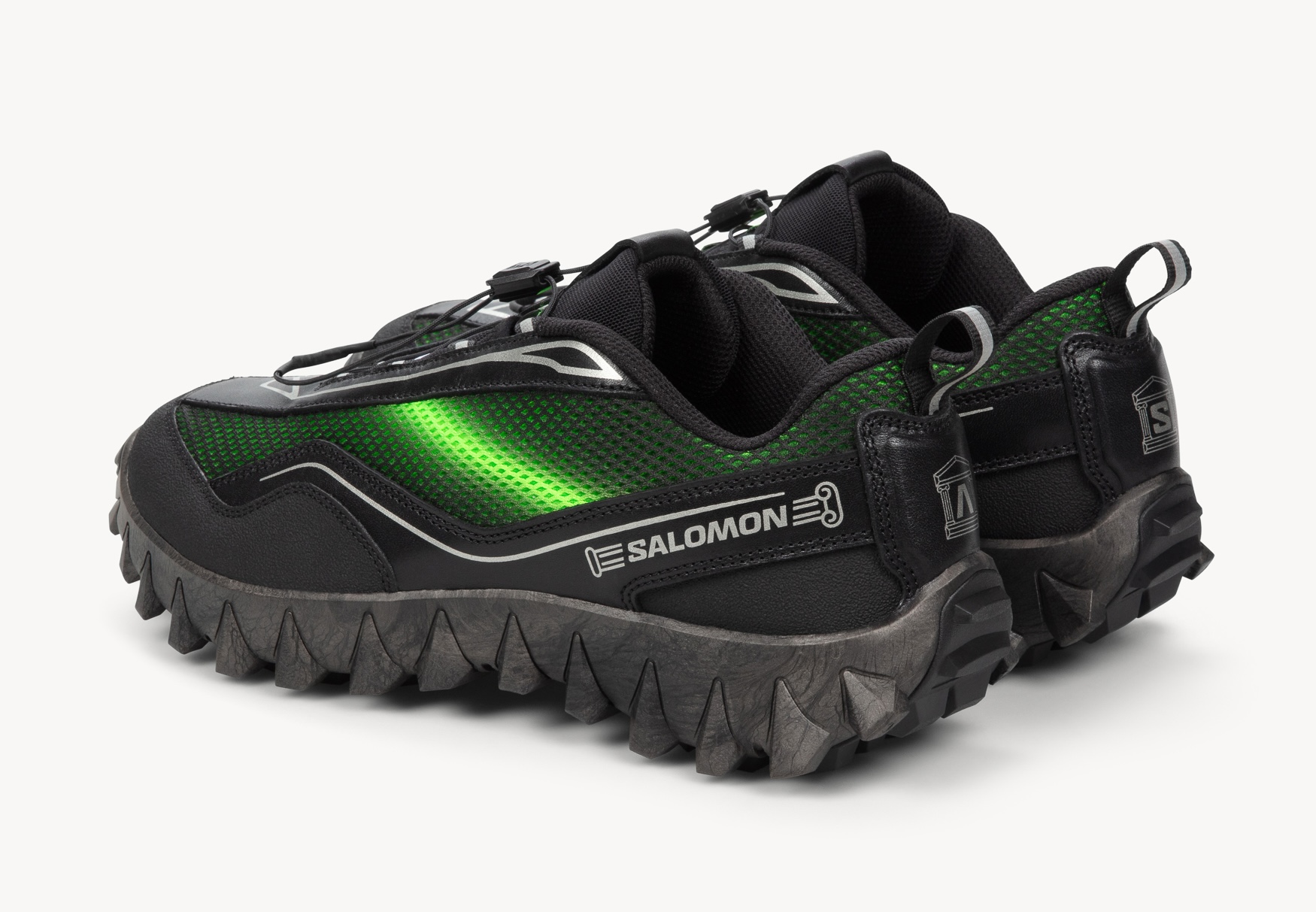 The Aries x Salomon Snowclog is offered in “Black” and “Lunar Rock” colorways, each showcasing Aries’ signature fluro highlight motif across the mesh upper. Aries Arise branding appears on the tongue strip, while Aries’ Parthenon motif is incorporated into the branding on the tongues, lateral heels, and heel tabs. Last but not least, the midsoles feature a marbled effect inspired by ancient Greek architecture and are crafted from InfiniFOAM — a sustainable material that is both recycled and recyclable.