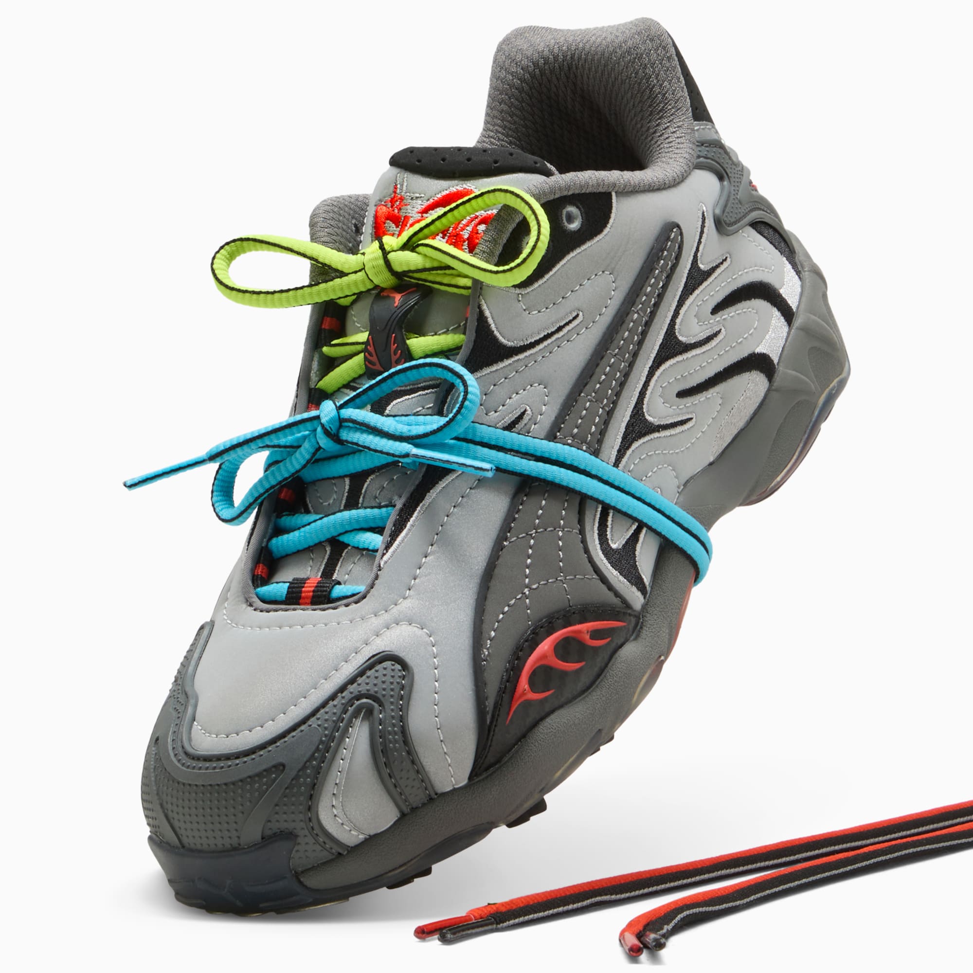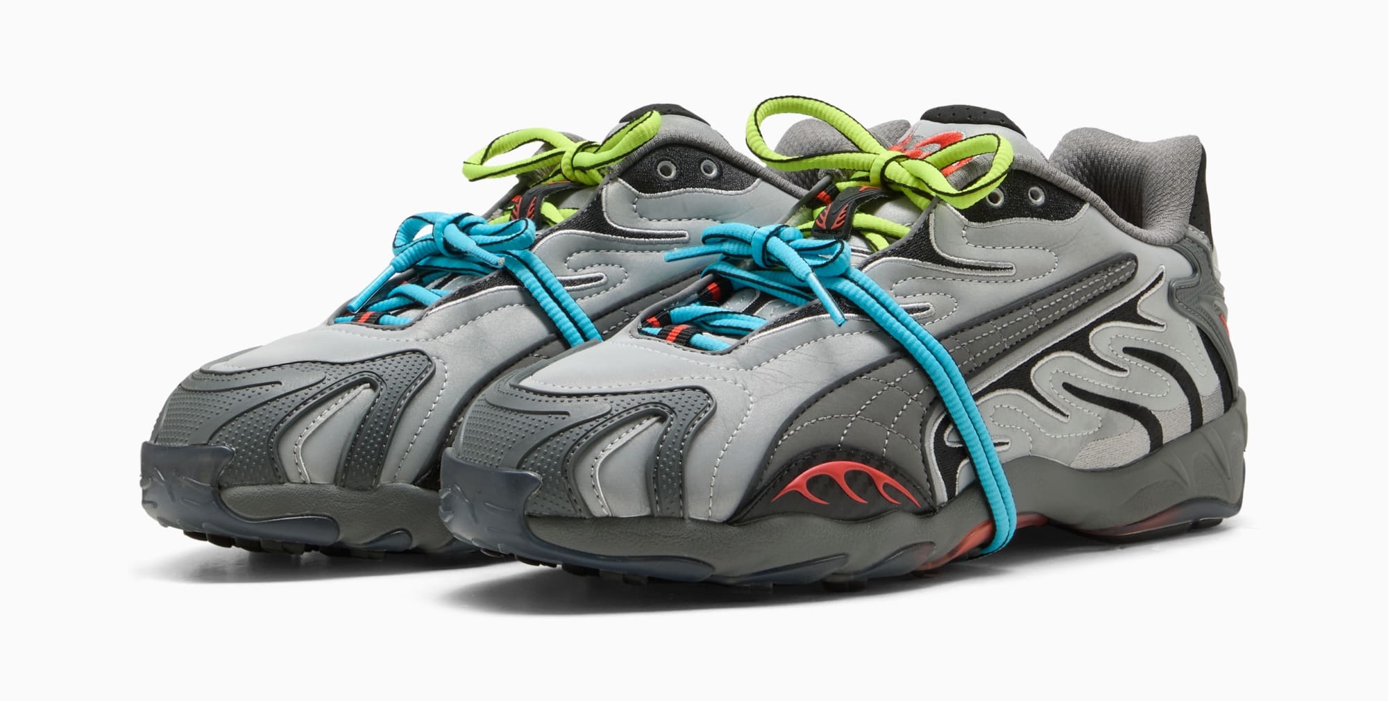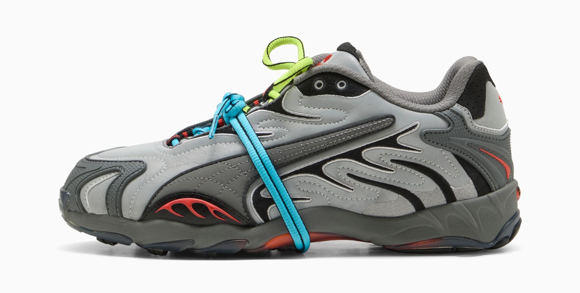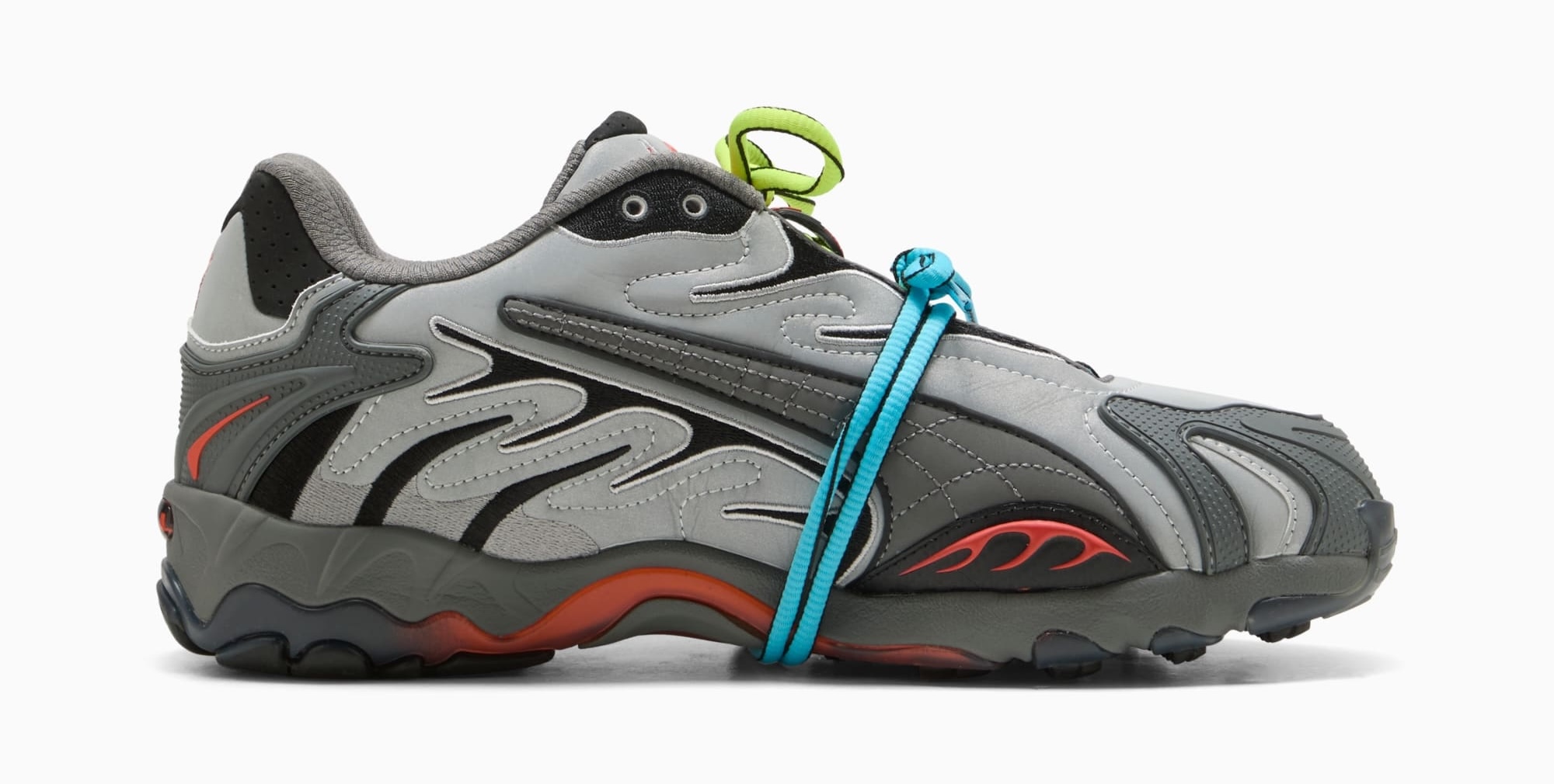 Comprised of footwear, apparel, and accessories, the collection fuses PUMA’s classic streetwear design with Flacko’s signature gritty and bold aesthetic. The collection is defined by striking color pops, technical textures, and touches of motorsport DNA seen on previous Rocky x PUMA drops.