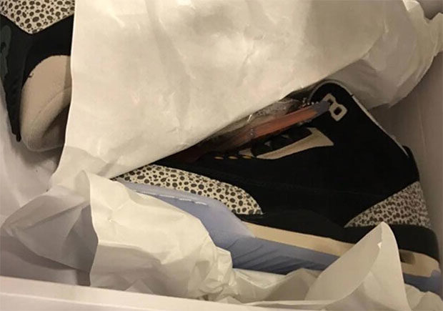 Update March 4th, 2017: Here’s a look at the upcoming Air Jordan 3 x Atmos Pack that consists of both pairs. The Air Jordan 3 will be featuring a Safari Print instead of the cement, while the Atmos Air Max 1 stay true to it’s original Cement print materials. Let us know what you think about these in the comments section.