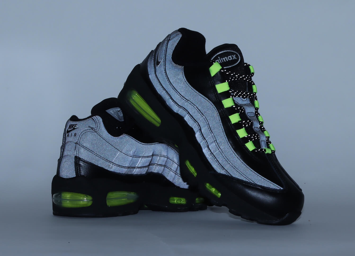 Visually, the “HRJK” Air Max 95 mirrors Harajuku’s contrast of neon storefronts and moody backstreets through reflective black panels and pops of neon yellow, the latter nodding to the original “Neon” Air Max 95. A “HRJK” mark embroidered on the inner lining completes the tribute.