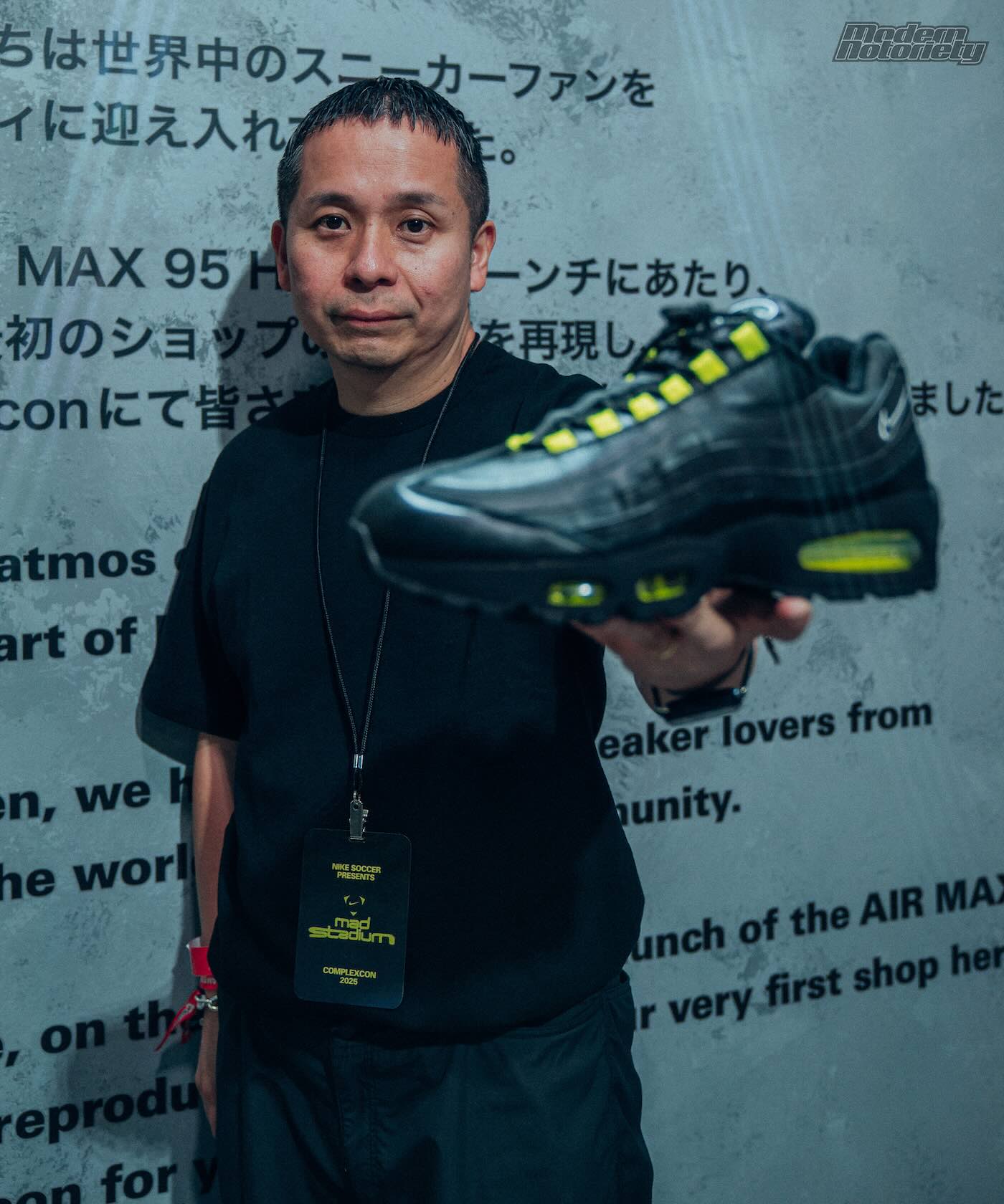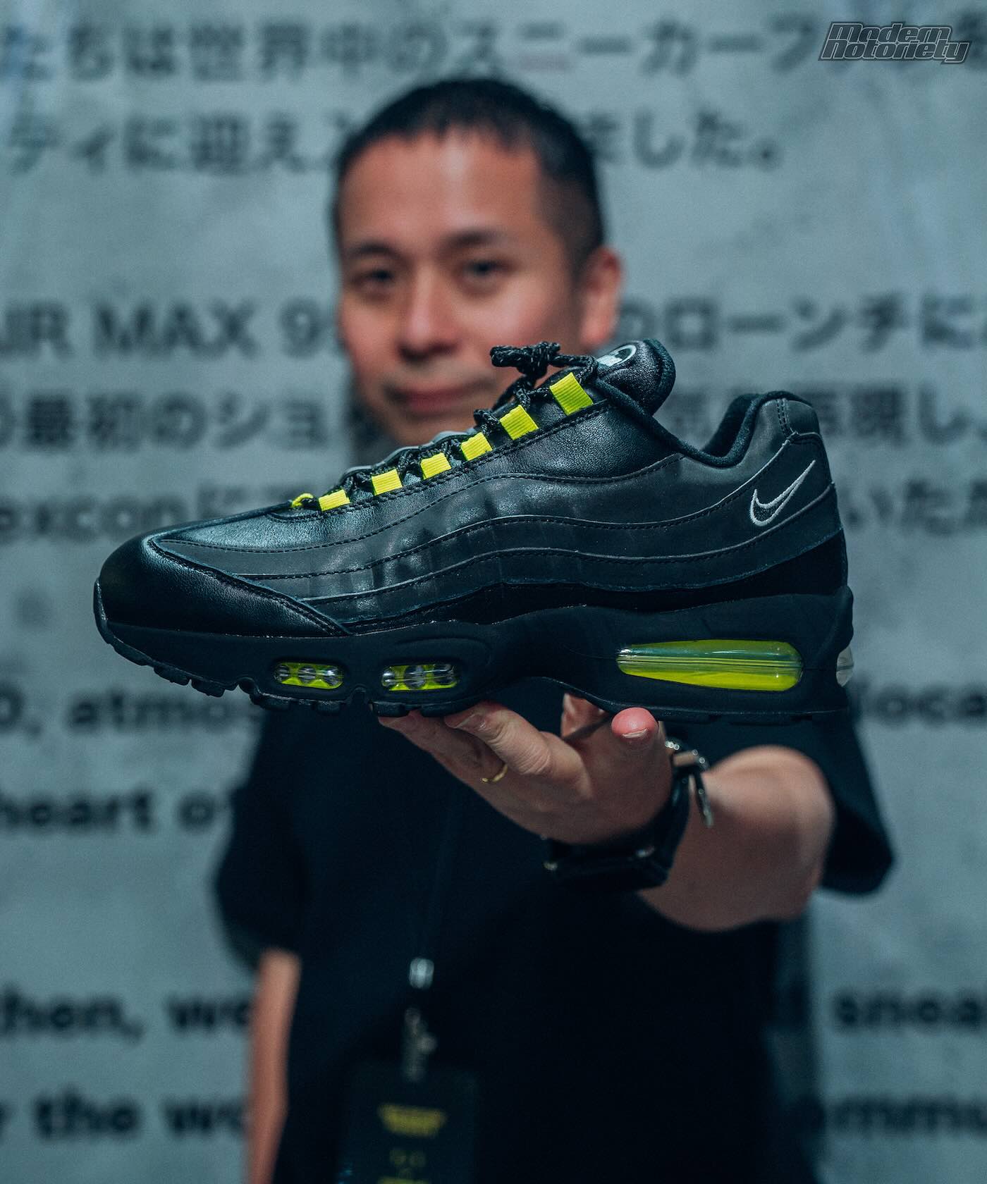 Update (10/30/25): We met up with Koji at ComplexCon to discuss the “HRJK” Air Max 95. He revealed an important detail that we missed. The design is not only inspired by the OG “Neon” colorway, but also the rare black leather Air Total Max SC from 1996. Koji also revealed that only 400 pairs were released at ComplexCon. Check out our ComplexCon content below:
