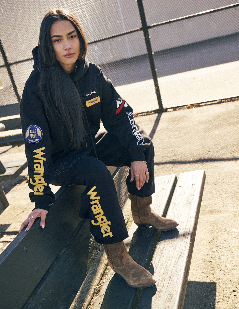 “Wrangler is the authority of the West, and Avirex owns the sky and the street,” says Mia Dell’Osso-Caputo, Creative Director of Avirex. “This collection lives where rodeo grit meets city swagger. By fusing our signature leather with Wrangler’s timeless denim, we created a new uniform for people who move with purpose and value authenticity above all else.”