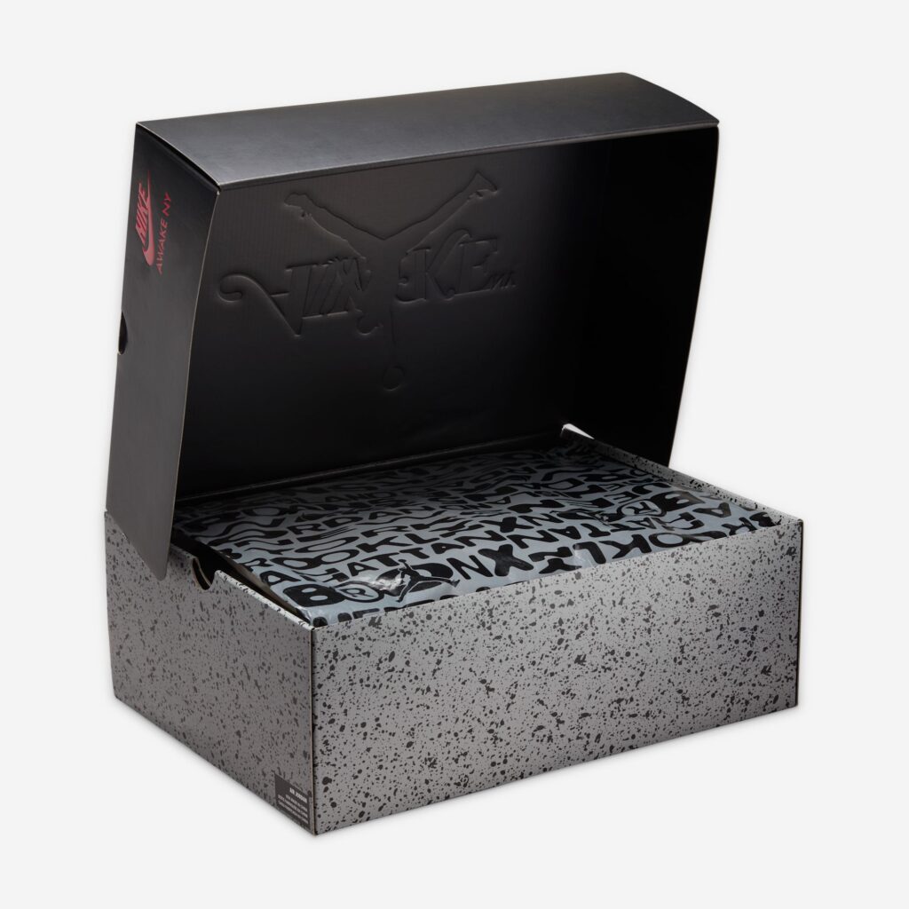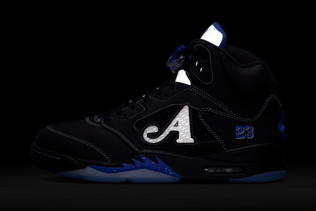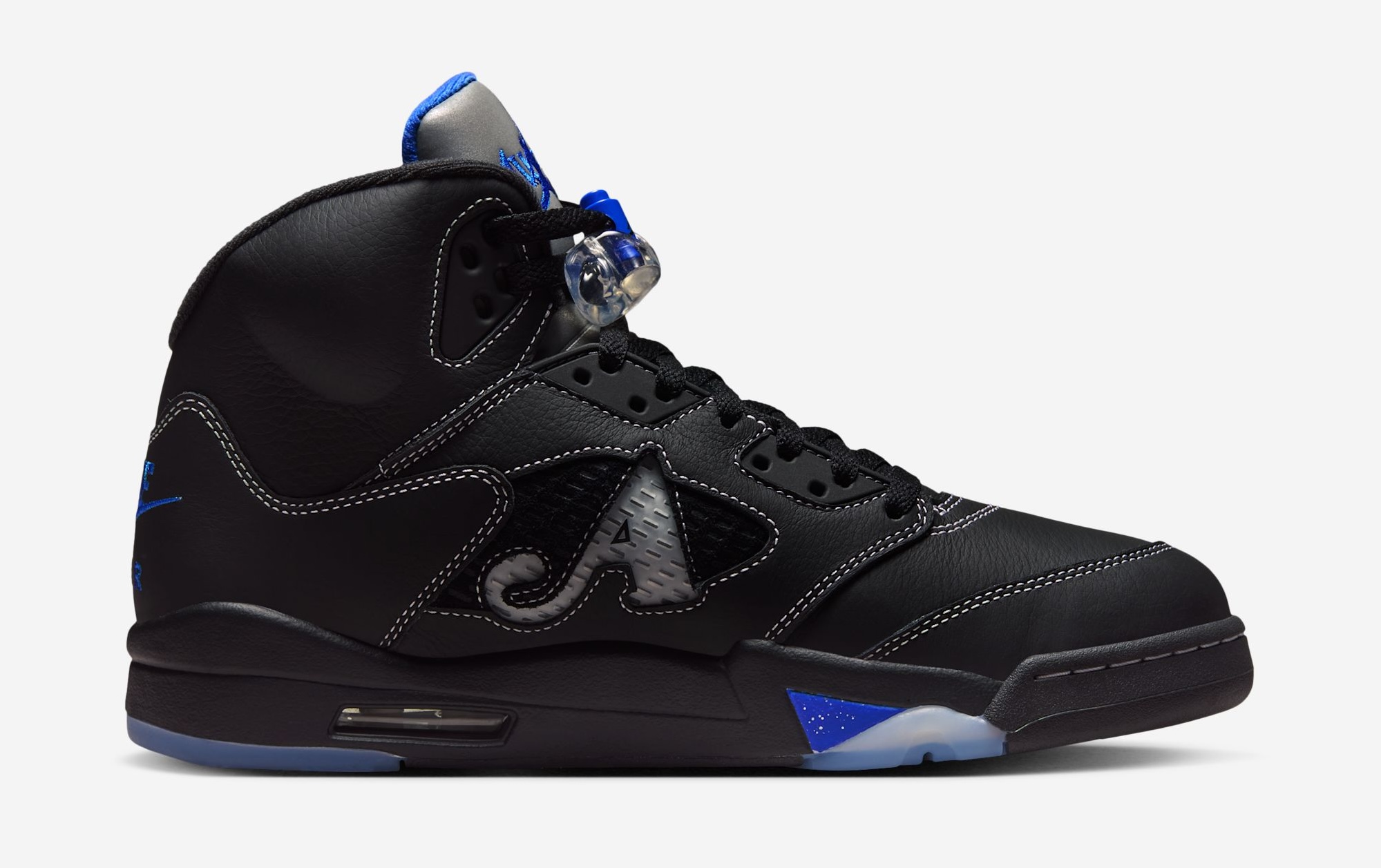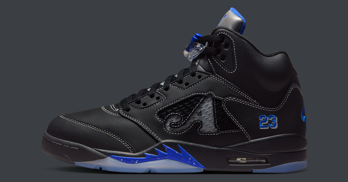 First revealed by 14-year-old Aiden “Bobo” Williams, this Awake AJ5 comes dressed in a Black/Racer Blue color scheme. Besides the color swap, these come with all of the same features as the pink colorway, including the “A” logo cutout over the side panel netting, contrast stitching (this time in white), “23” and “NY” embroidery on the lateral heels, and an icy outsole with Awake NY branding.