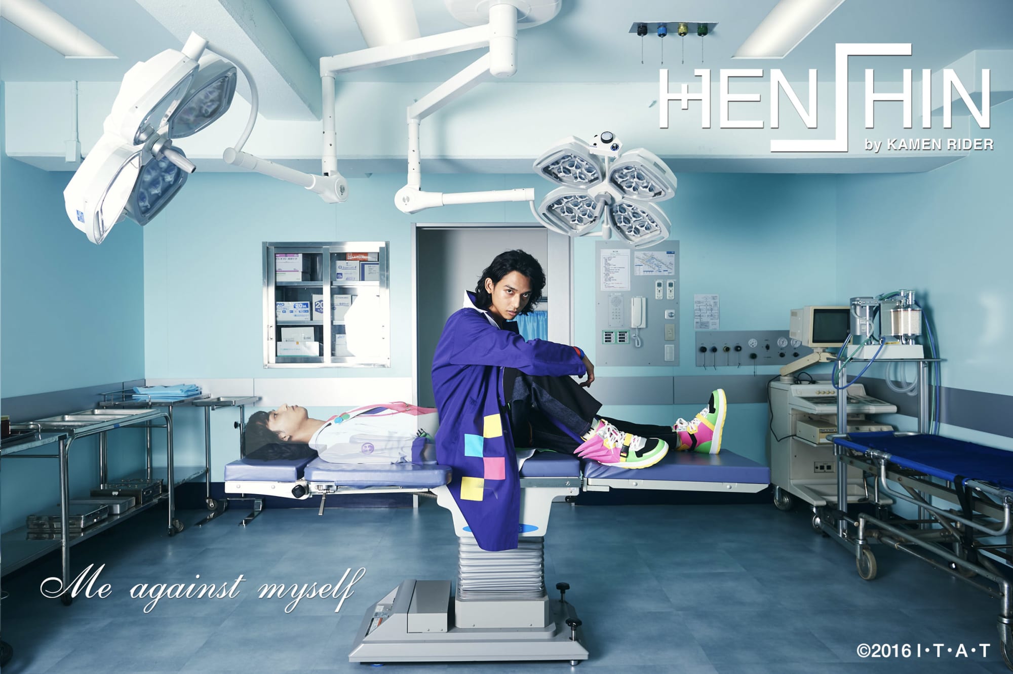 The premise of Kamen Rider Ex-Aid revolved around a trio of doctors who saved the lives of patients infected with a mutated computer virus called Bugster, using equipment inspired by retro video games. The collection is dressed in neon and fluorescent colors from the series, most notably on the pair of shoes inspired by the helmet of Kamen Rider Ex-Aid Action Gamer Level 2. The collection also features reversible apparel that highlights the conflict between Emu Hojo and Parado. This includes a medical coat, pants, and tees. Head of design for the collection is Daisuke Hashizume, the designer of Japanese label biscuithead.