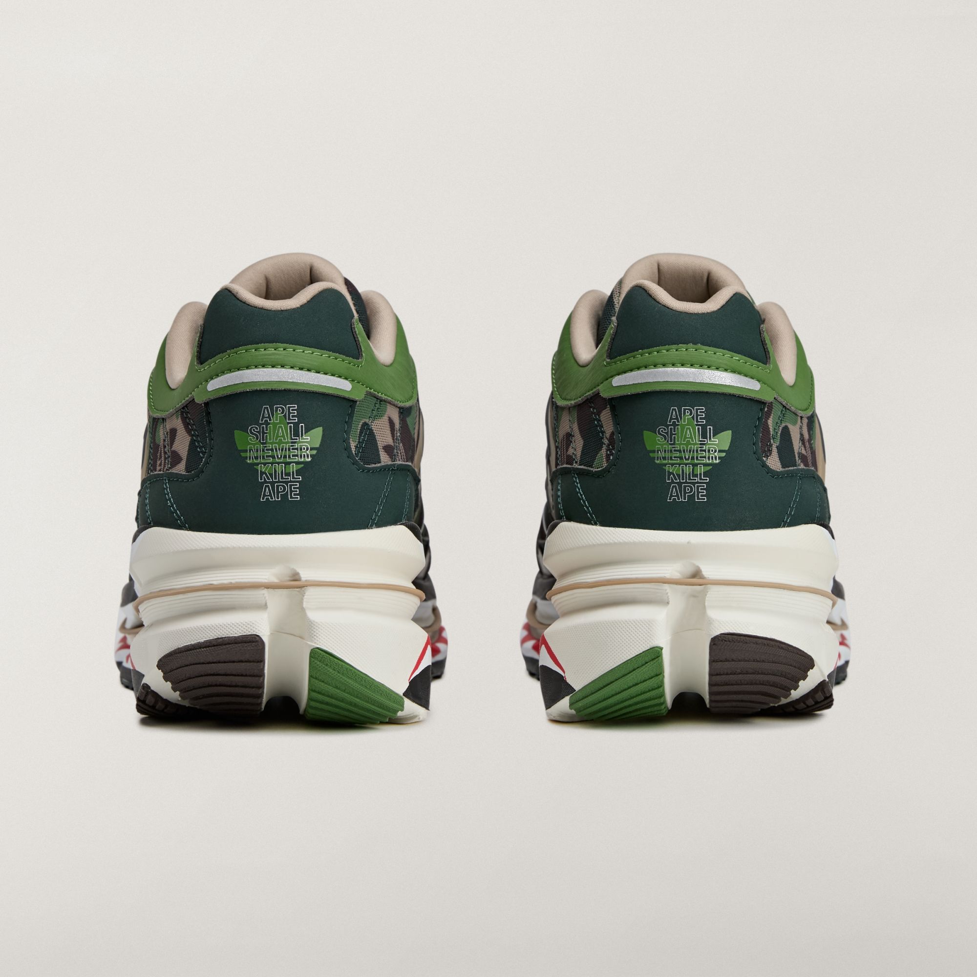 BAPE’s take on the HRMY comes dressed in the Japanese brand’s signature green ABC CAMO and incorporates a shark teeth motif across the length of the midsole, inspired by the iconic BAPE SHARK HOODIE. Other features include metallic 3D eyelets, a distinctive 3-Stripes design on the side panels with a reflective BAPE STA logo underlay, and BAPE’s “APE SHALL NEVER KILL APE” motto on the heels.