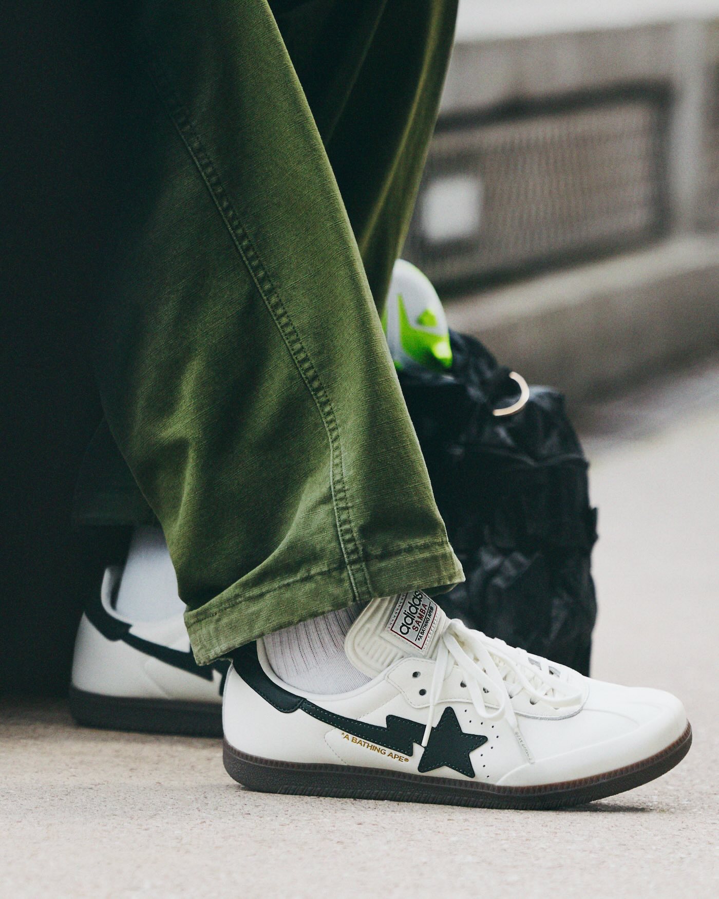 The HRMY is joined by a black croc colorway of the Campus 00s, as well as an off-white Samba with deep green accents, adding to the two BAPE Samba colorways that released for Fall/Winter 2025.
