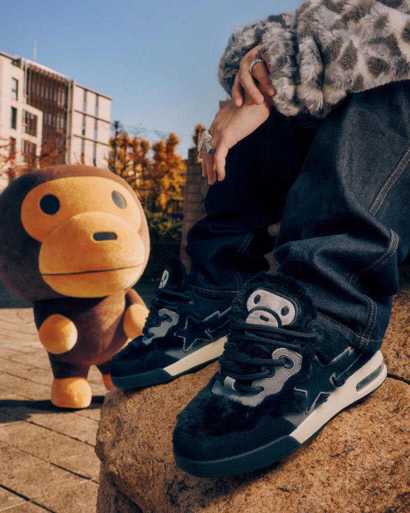 Update (12/18/25): BAPE officially introduces its BABY MILO FLIP STA Holiday Pack, featuring fuzzy brown and black colorways of the FLIP STA. These will be available December 20th on BAPE.com and at BAPE STORE locations. Release details for the SK8 STA are currently unavailable. Check out both colorways and the lookbook photos below.