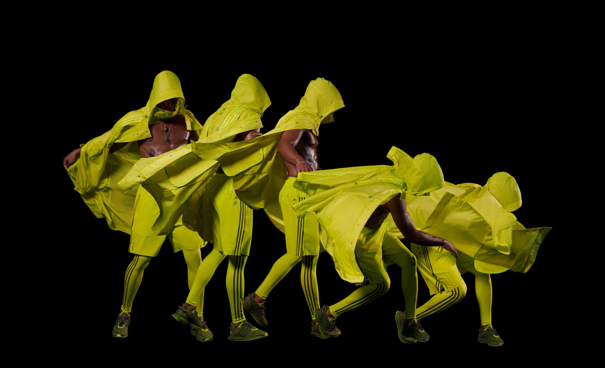 Following the release of the Rodeo collection, this next IVY PARK collection features a black and olive color scheme with pops of neon lime. The 29-piece offering includes bike shorts, tights, sports bras, t-shirts, shorts, a hoodie, and windbreaker. The design strategy takes influence from Peloton and athleisure, providing pieces that layer well while still optimizing functionality. As usual, the collection is meant to be worn by all with sizes running from XXS to 3XL. Some items are also unisex, fitting any and all body types. An Ultraboost iteration is included as well, reaching a similar palette of black and neon green.