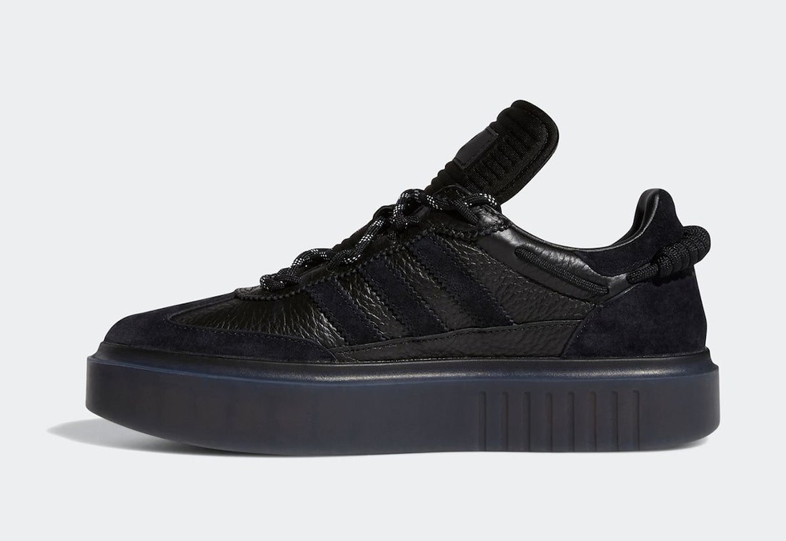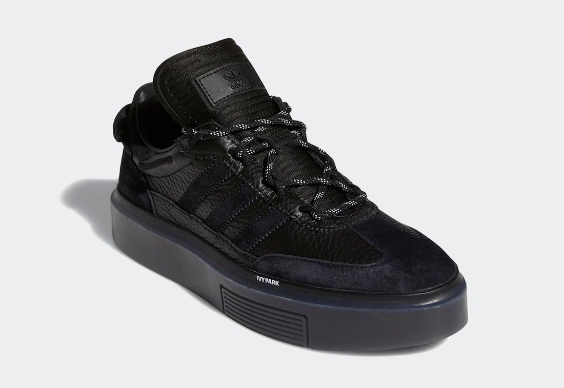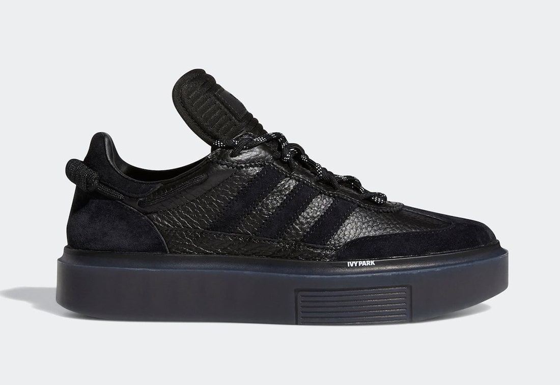 The last Ivy Park collection included a Hi-Res Yellow Ultraboost and a white Sleek Super 72. Both of those models have returned, except this time their murdered out in black. The Sleek Super features a black tumbled leather construction with matching suede overlays and a thick translucent outsole. The Ultraboost comes with a black Primeknit construction, with a matching black leather lace, matching black midsole, and a Hi-Res Yellow outsole. Both come with a bungie-style lacing system that wraps around the ankle.