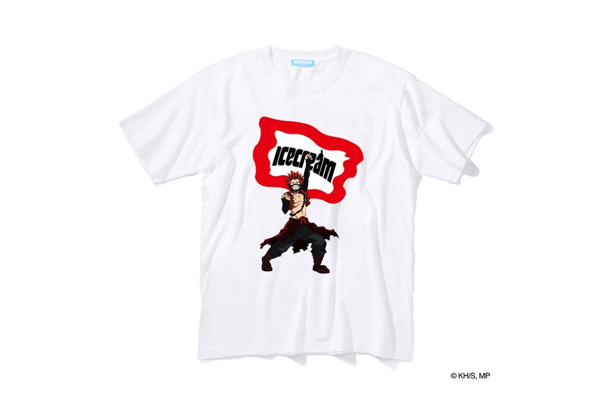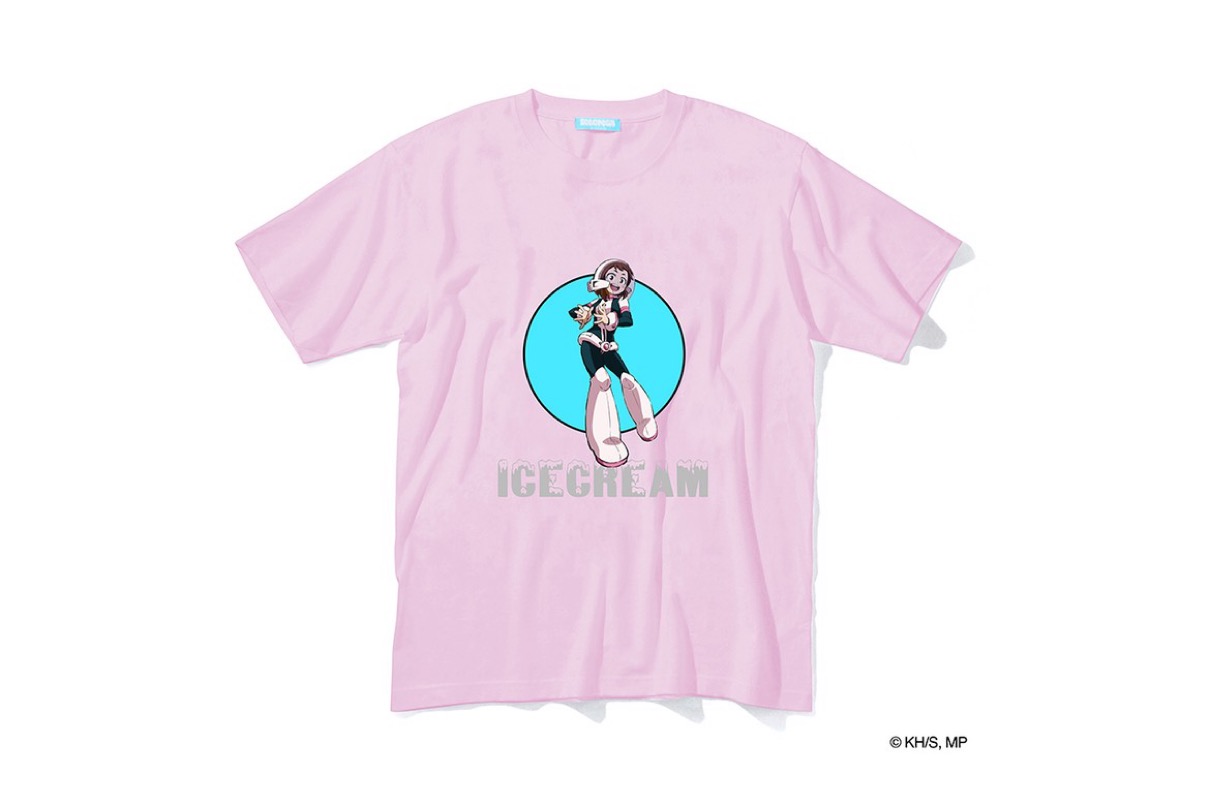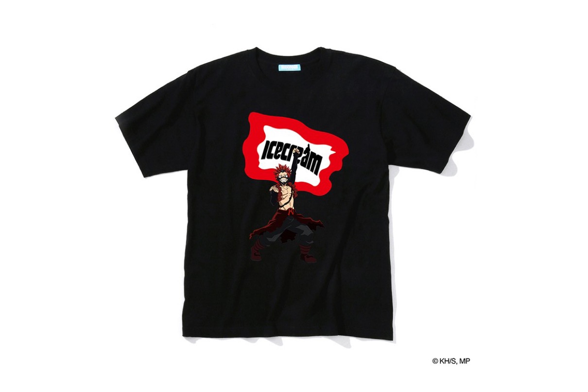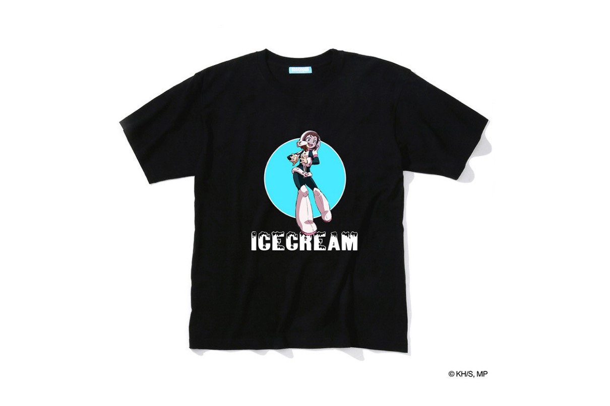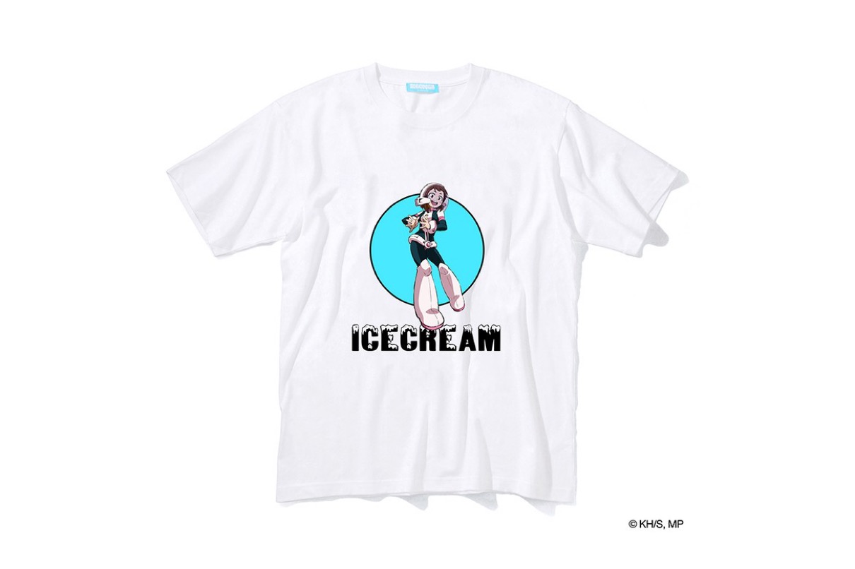 Comprised of graphic tees, the collection includes five designs, each one featuring a different character from the series alongside ICECREAM branding. The main protagonist, Izuku Midoriya (aka Deku) in his green Gamma suit. The collection also features four of Midoriya’s 1-A classmates: Ochaco Uraraka, Shoto Todoroki, Katsuki Bakugo, and Eijiro Kirishima, Each tee is available in black, white, and a third color option.
