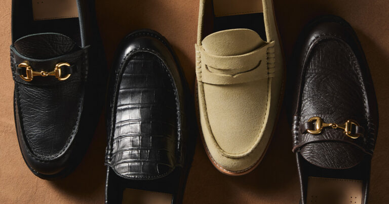 Offered in crocodile leather, tumbled leather horsebit, and suede penny iterations.
