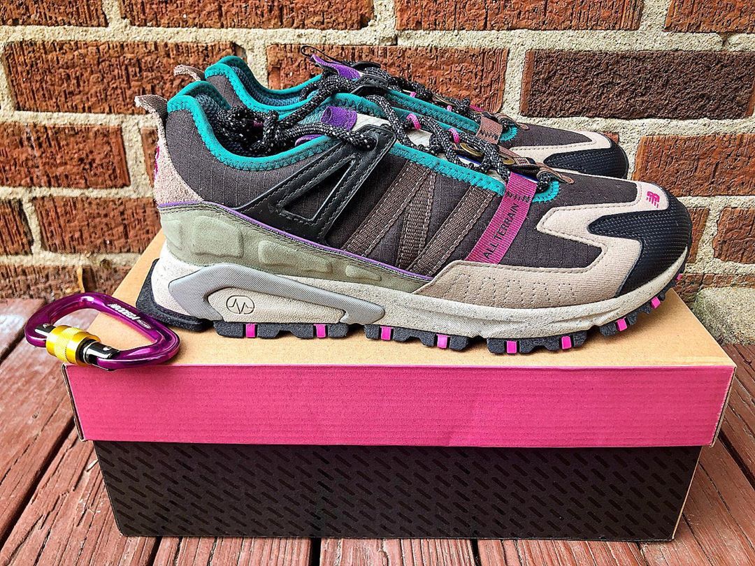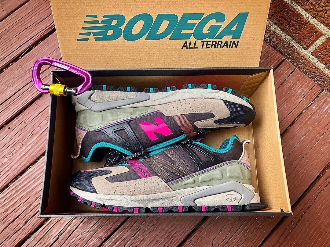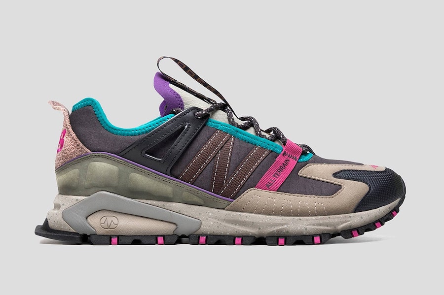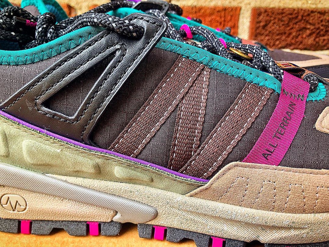 New Balance fan accounts have received early pairs of the new model, which appears to be a retro hiking-inspired makeover of the brand’s X-Racer model. The X-Racer All-Terrain features completely revamped ripstop and suede paneling including a stitched New Balance N on the lateral side and a printed hot pink logo on the medial side. The shoe also appears to use significantly heftier lockdown mechanisms than the mainline X-Racer, and it features straps holding down the laces and tongue (which features a removable Bodega-patterned loop). Finally, the shoe marries the X-Racer’s sculpted ABZORB midsole with a rugged trail-ready outsole.