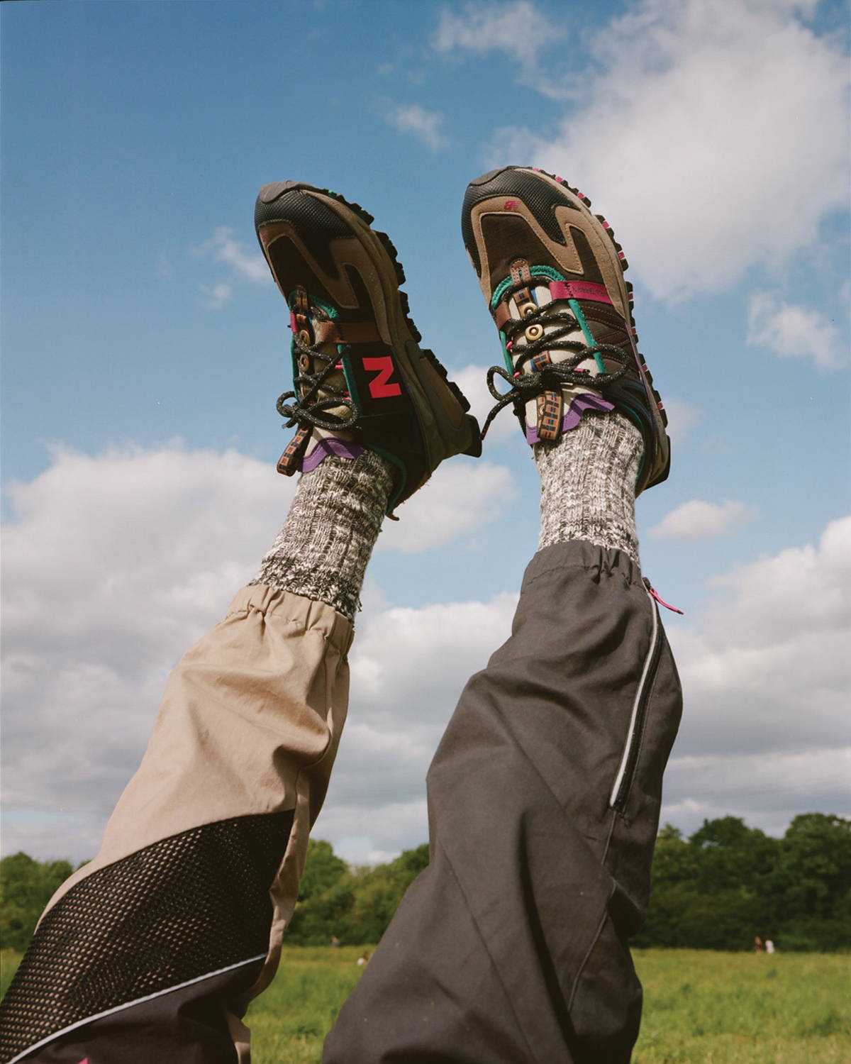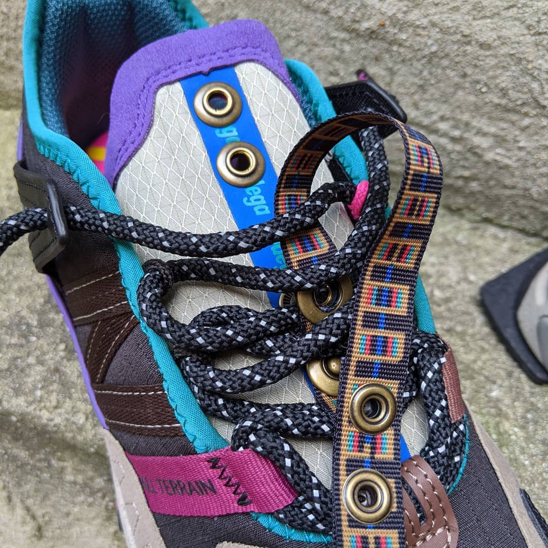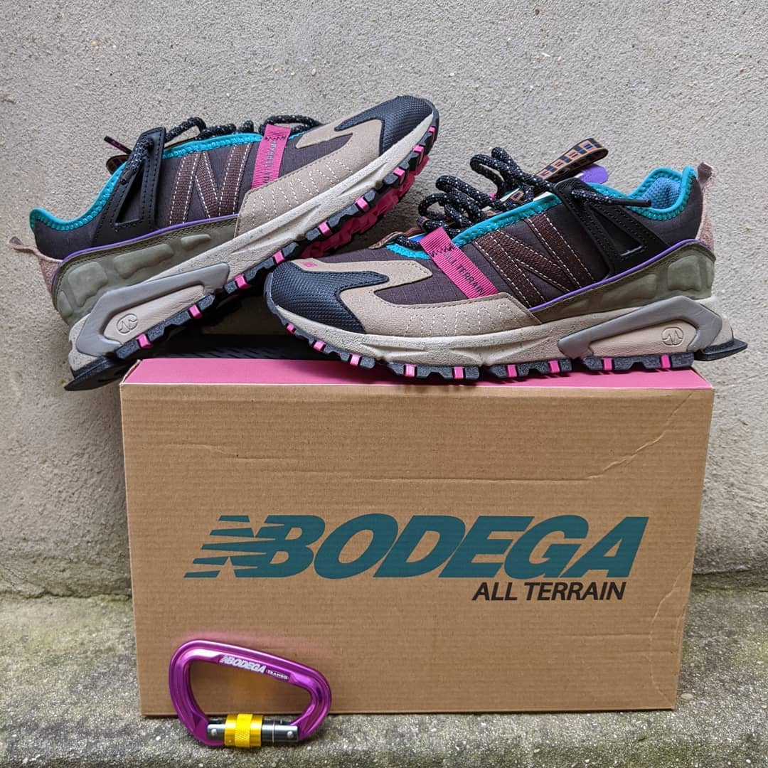 New Balance fan accounts have received early pairs of the new model, which appears to be a retro hiking-inspired makeover of the brand’s X-Racer model. The X-Racer All-Terrain features completely revamped ripstop and suede paneling including a stitched New Balance N on the lateral side and a printed hot pink logo on the medial side. The shoe also appears to use significantly heftier lockdown mechanisms than the mainline X-Racer, and it features straps holding down the laces and tongue (which features a removable Bodega-patterned loop). Finally, the shoe marries the X-Racer’s sculpted ABZORB midsole with a rugged trail-ready outsole.