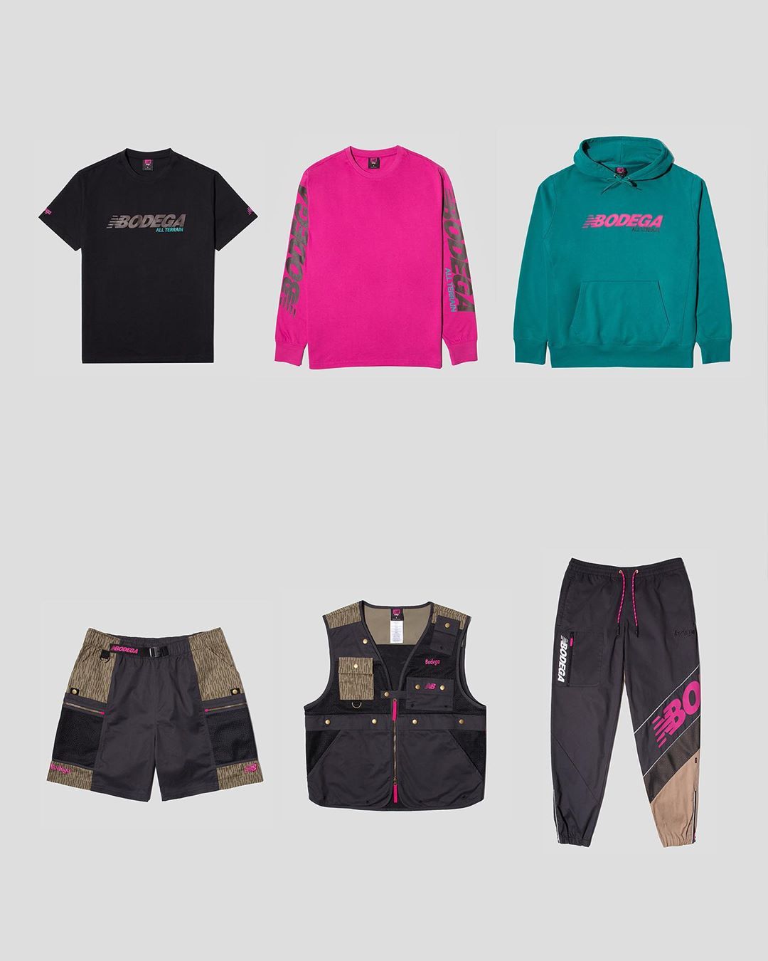 Update (06/16/20): Bodega has announced the release info for its New Balance collaboration. The “All-Terrain” X-Racer will be accompanied by a range of co-branded sportswear: track bottoms, tees, hoodies, along with zip cargo pocket-equipped vests and shorts, featuring vintage, East German rain camouflage fabric.