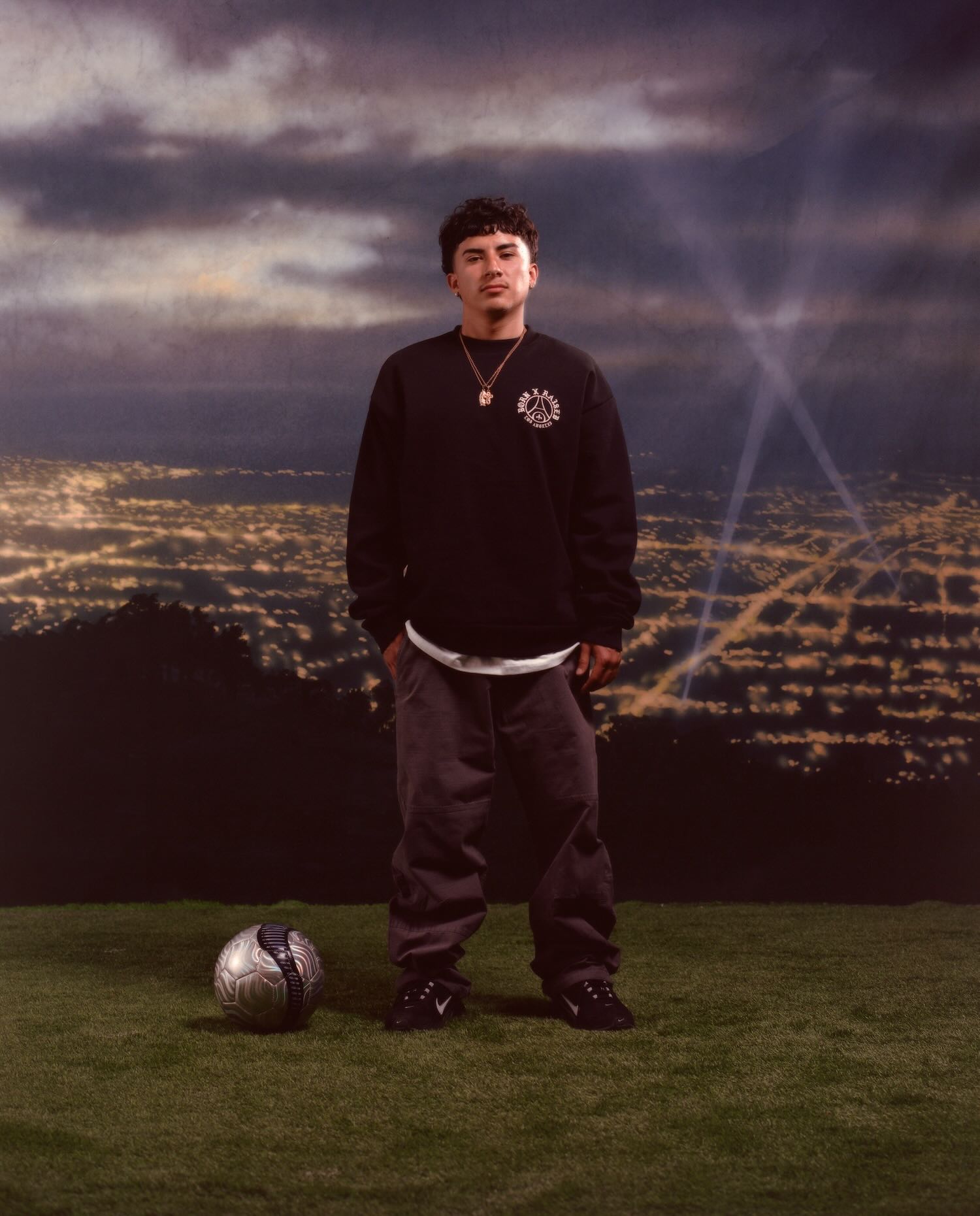 Rounding out the capsule is a selection of tees and crewneck sweatshirts adorned with the respective logos of both parties and an ‘Off the Pitch’ slogan at the back.