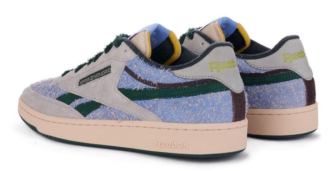 The LA-based brand reimagines the Club C, a popular tennis silhouette introduced in the ’80s, and gives it a modern, nature-inspired twist. The base of the uppers are constructed from moss-like shaggy suede, while overlays come in short-hair suede, topped off with smooth leather for the tongues, heel panels, and Vectors on the side panels. Additional details include Brain Dead branding on the lateral in place of the usual Reebok branding, co-branded logos on the tongue tags and insoles, and fuzzy laces. The shoe comes in two colorways: Purple Abyss/Dark Forest/Batik Blue and Soft Ecru/Dark Forest/Tin Gray.