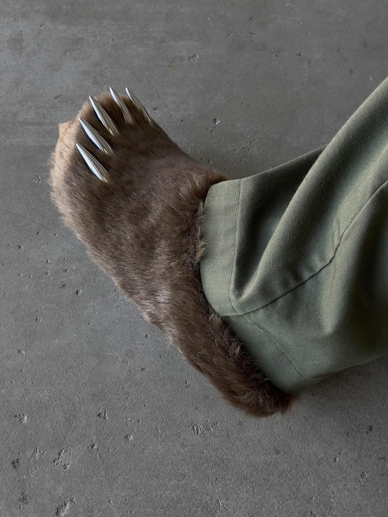 After entering the footwear game earlier in the year with their Birkenstock-like paisley mules, Bravest is kicking things up a notch with the “Bear Claws,” a mule made from premium calf hair equipped with molded metal claw hardware made to look like an actual claw of a brown bear. The mules also feature a cozy leather footbed stamped with Bravest Studios branding and come packaged in a matching fur-covered shoe box.