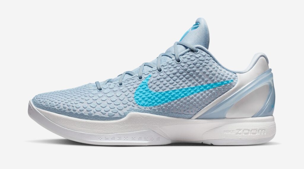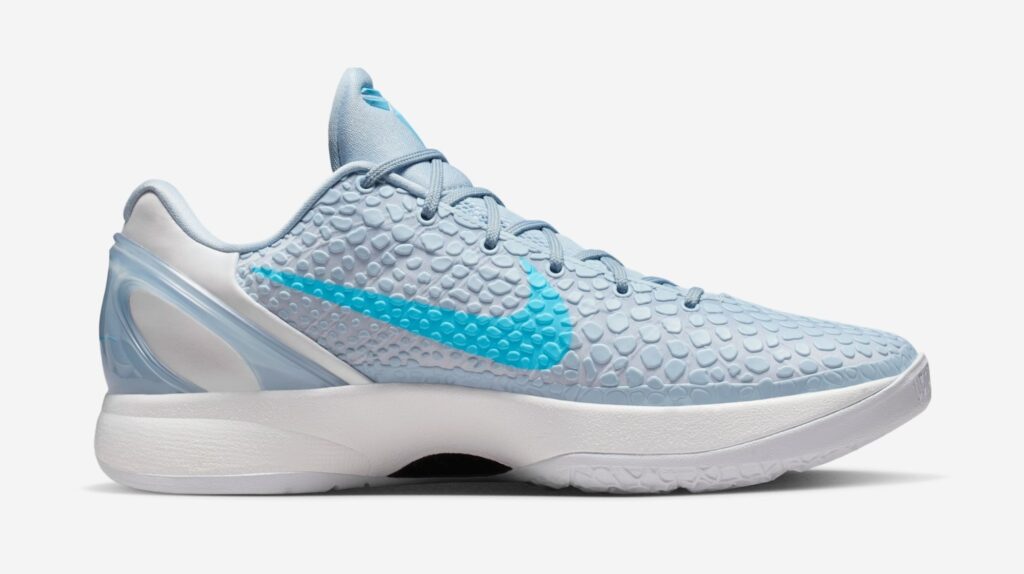 The WNBA superstar has worn her “Light Armory Blue” Kobe 6 PE several times throughout her rookie season, first debuting the colorway in an August matchup against Angel Reese and the Chicago Sky. It features an icy greyish-blue upper with brighter blue hits on the Swoosh and Kobe Sheath logo on the tongue. An all-white sole unit and white leather around the heel rounds out the color palette.