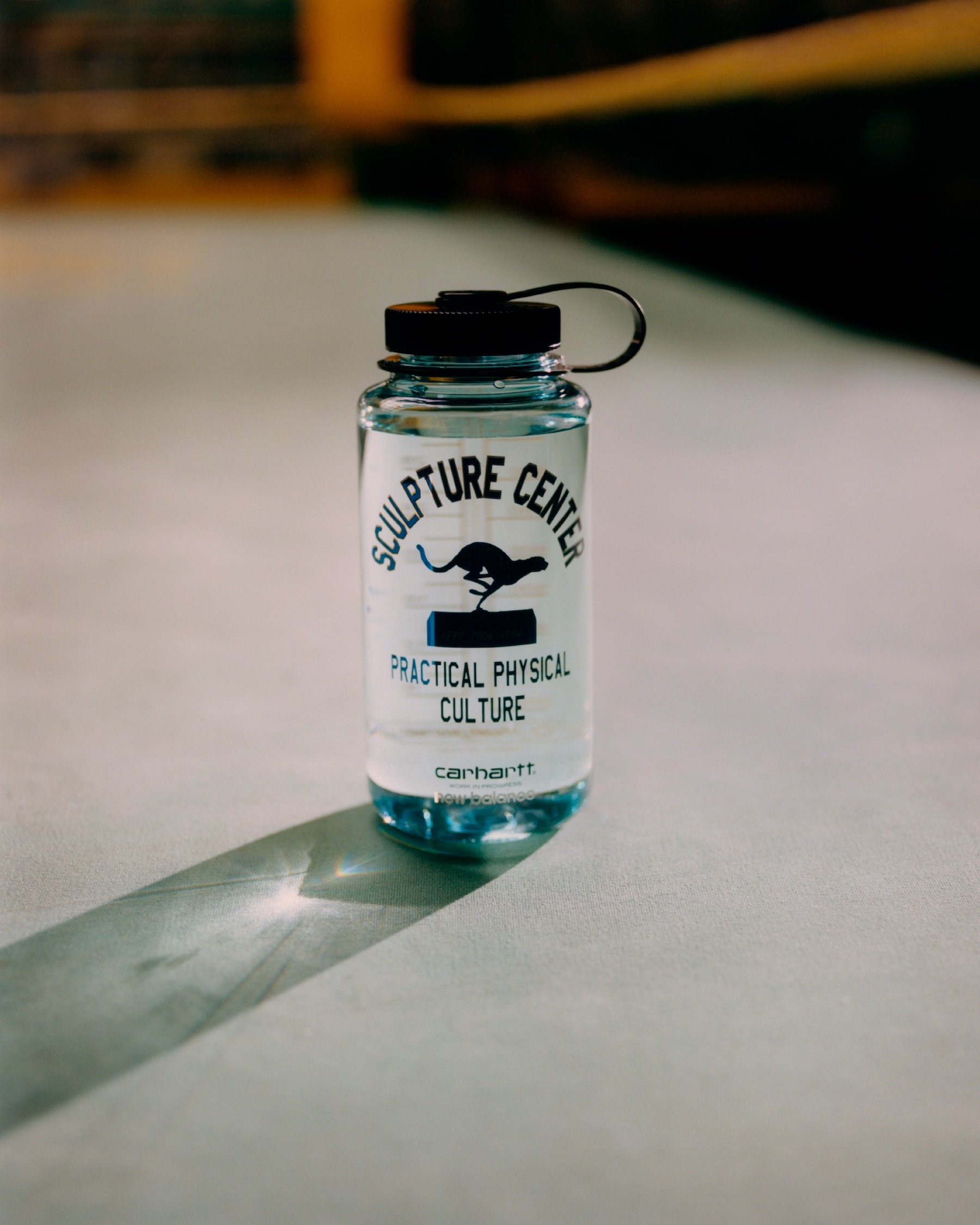 The collection is built around the idea of the sculpture center, a composite of humble neighborhood gyms found across America. A palette of dark blues and greys is used throughout the collection, while the apparel features trophy motifs and collegiate-inspired typography.