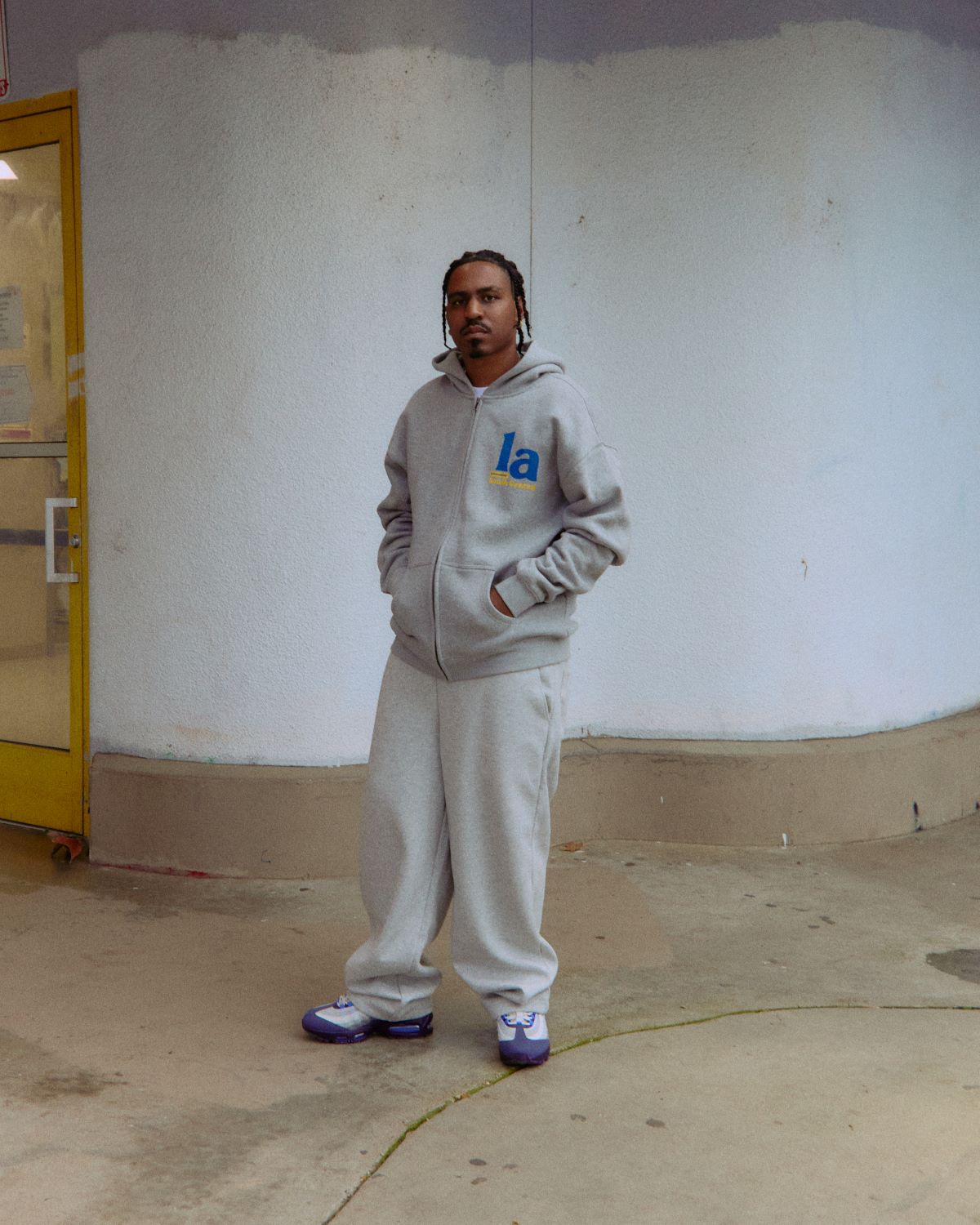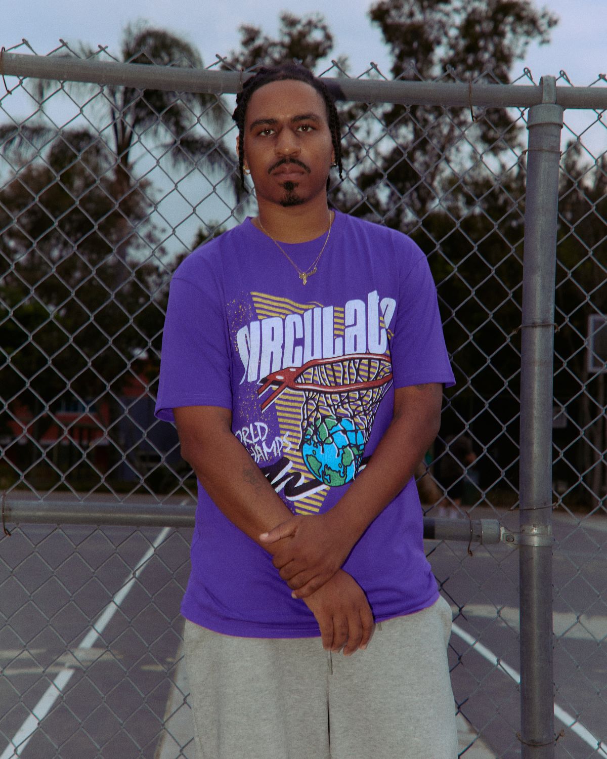 Designed to celebrate creatives while channeling the spirit of Los Angeles, the capsule draws heavily from Crenshaw High School color palettes and LA-inspired team colors. The collection features graphic-driven staples, including the Championship Artist white tee, World Champions tees in dark blue and purple, Circulate Arts P.E. Uniform, which features another bold white graphic tee paired with blue mesh shorts, and lastly the Circulate South Central Hoodie in grey.