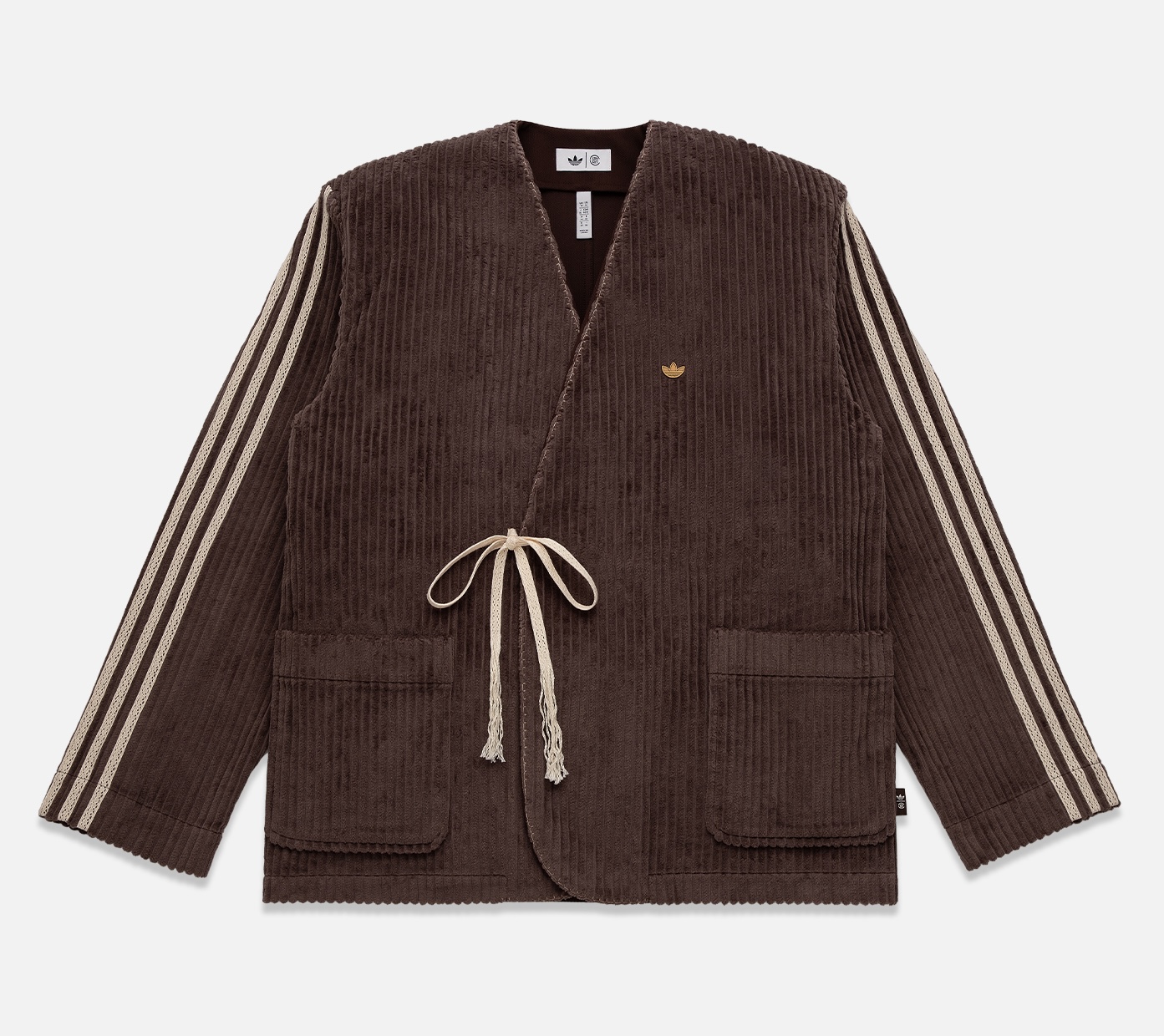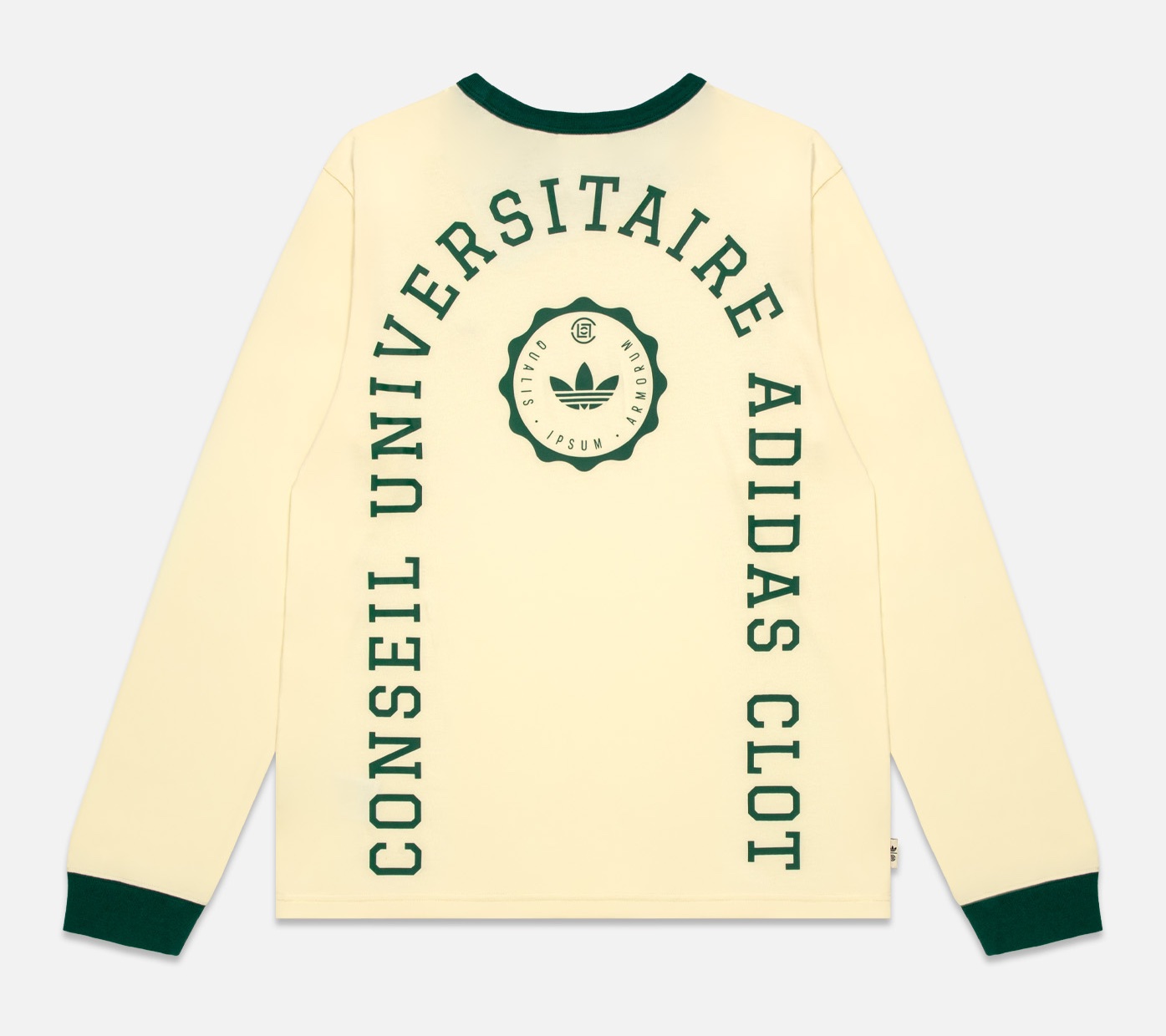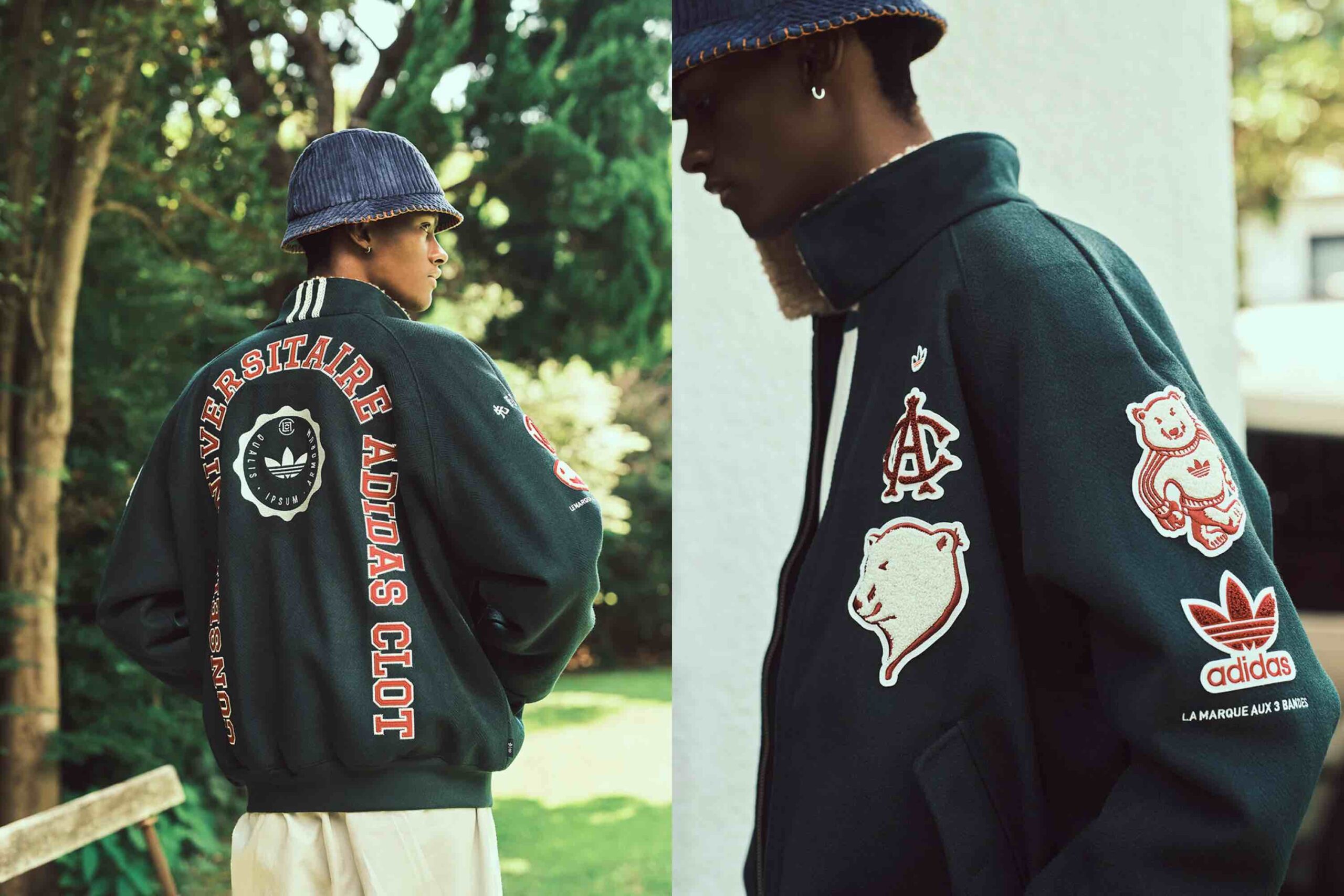 Premium knitwear includes the CLOT Sweater, which showcases mohair-inspired Trefoil branding that plays with softness and structure. Meanwhile, the corduroy Suit Jacket and Pant set merges classic tailoring with sport influences — the jacket adopts CLOT’s signature wrap-style closure, accented with subtle 3-Stripes detailing for an understated athletic touch. Foundational pieces such as the embroidered long-sleeve tee, French terry quarter-zip, and sweatpant round out the offering, featuring “Universitaire adidas CLOT” graphics and dual insignias inspired by university crest traditions.