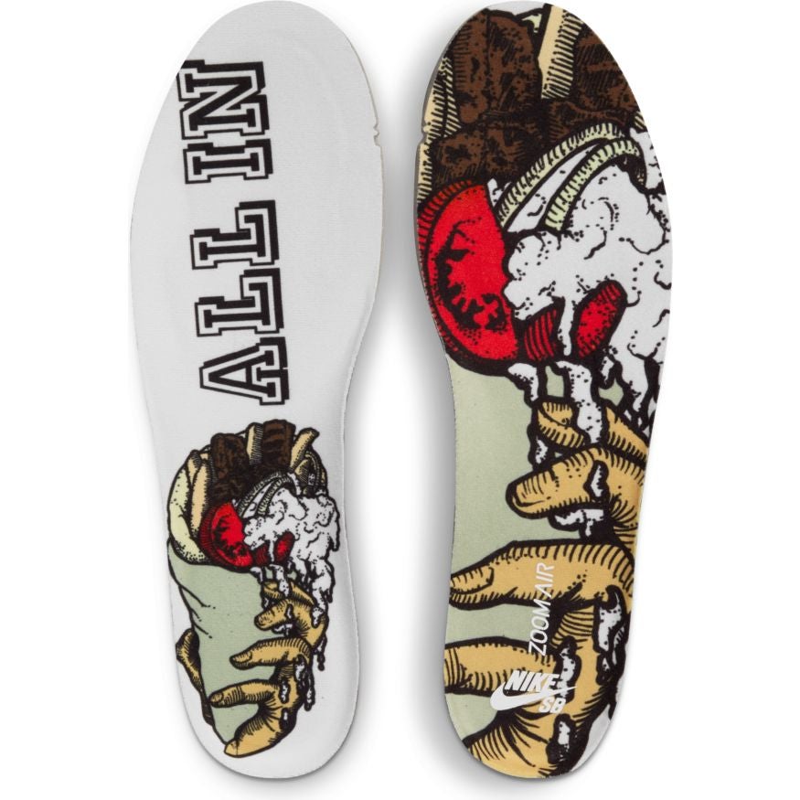 Aptly named “Kebab & Destroy,” the color scheme on this SB Dunk High pulls from the ingredients that make up a gyro. A tan suede base represents the pita bread, while a white leather toe box represents the tzatziki sauce. We also have red on the laces and the leather Swoosh, which represent the tomatoes, while the quarter panel overlay comes in a brown elephant print to mimic the look of gyro meat. Additional features include a Color Skates logo on the lateral heel, a gyro graphic on the medial heel, gyro graphic insoles, and a black rubber sole unit.