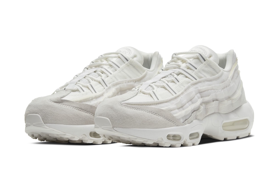 This Air Max 95 comes in three colorways. One is dressed in all black, another in all white, and a third dressed in black and white with a gradient mix of greys. All three versions feature a deconstructed, DIY-style look with exposed foam and extra fabric that extends beyond the sewing seams. Reflective detailing is included on the lace stays and heel.