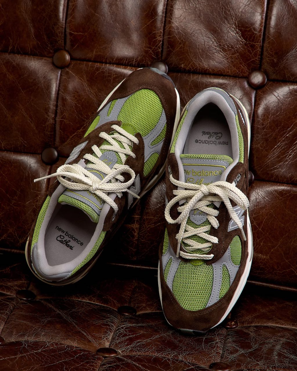 The new iteration, aptly dubbed “Reverse,” serves as a sequel to the duo’s debut 991v2 from Kith Women Spring 2024, which featured a Chocolate Brown base with Pistachio overlays. This time, the color story flips — a Pistachio base is paired with Chocolate Brown accents for a refined twist on the original. The second edition maintains the same soft suede upper over an open mesh, with co-branded New Balance and Cathari detailing on the tongue and reflective “N” logos at the lateral and medial sides. Inspired by Daniëlle’s love for pastries, the sneaker is reminiscent of delectable baked goods that evoke classic nutty flavor profiles.