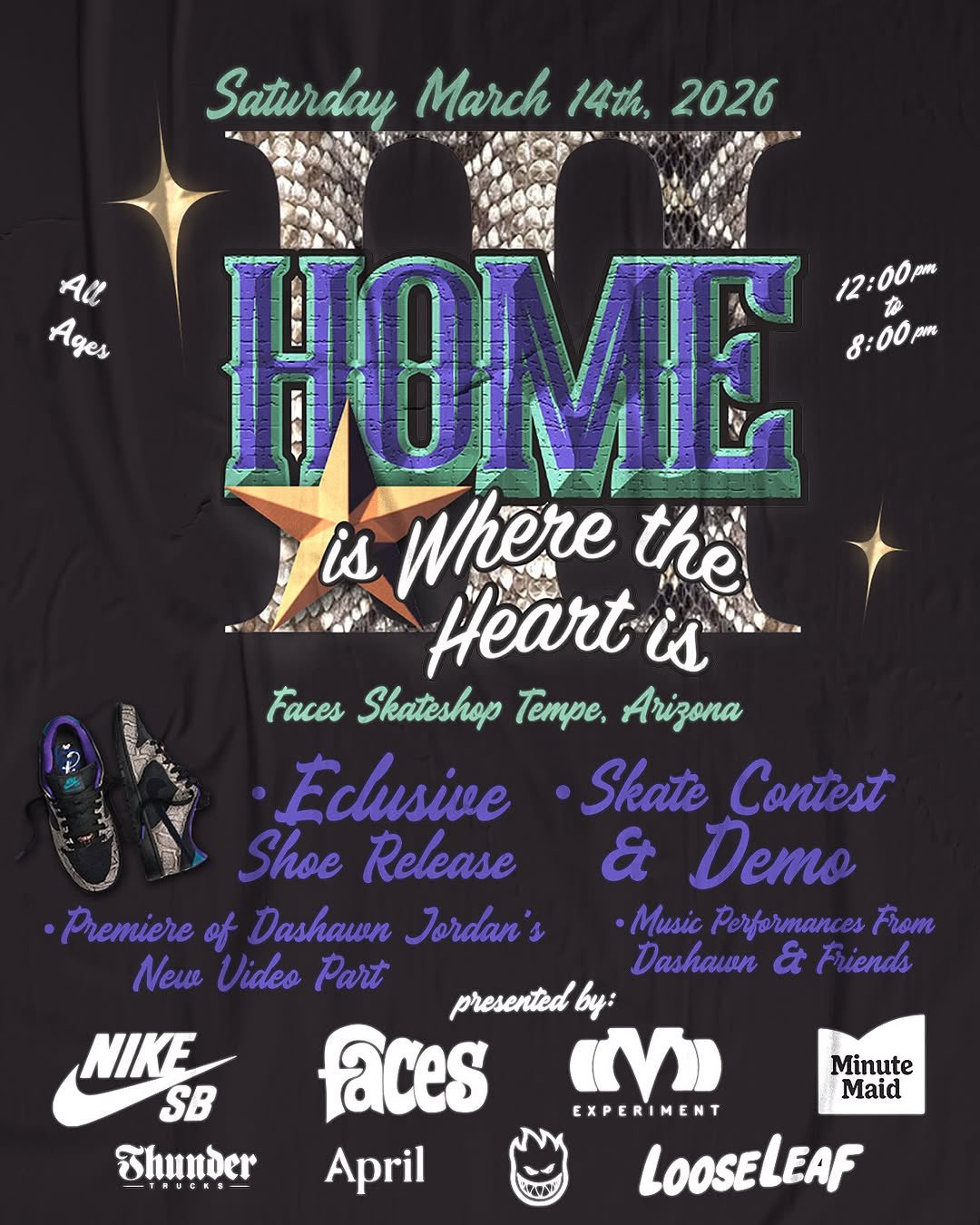 The Dashawn Jordan x Nike SB Dunk Low “Copperhead” drops March 14th at Faces Skate Shop in Tempe, Arizona, followed by a wider release on March 17th at global skate shops and on SNKRS (overseas only). Check out the pair below.