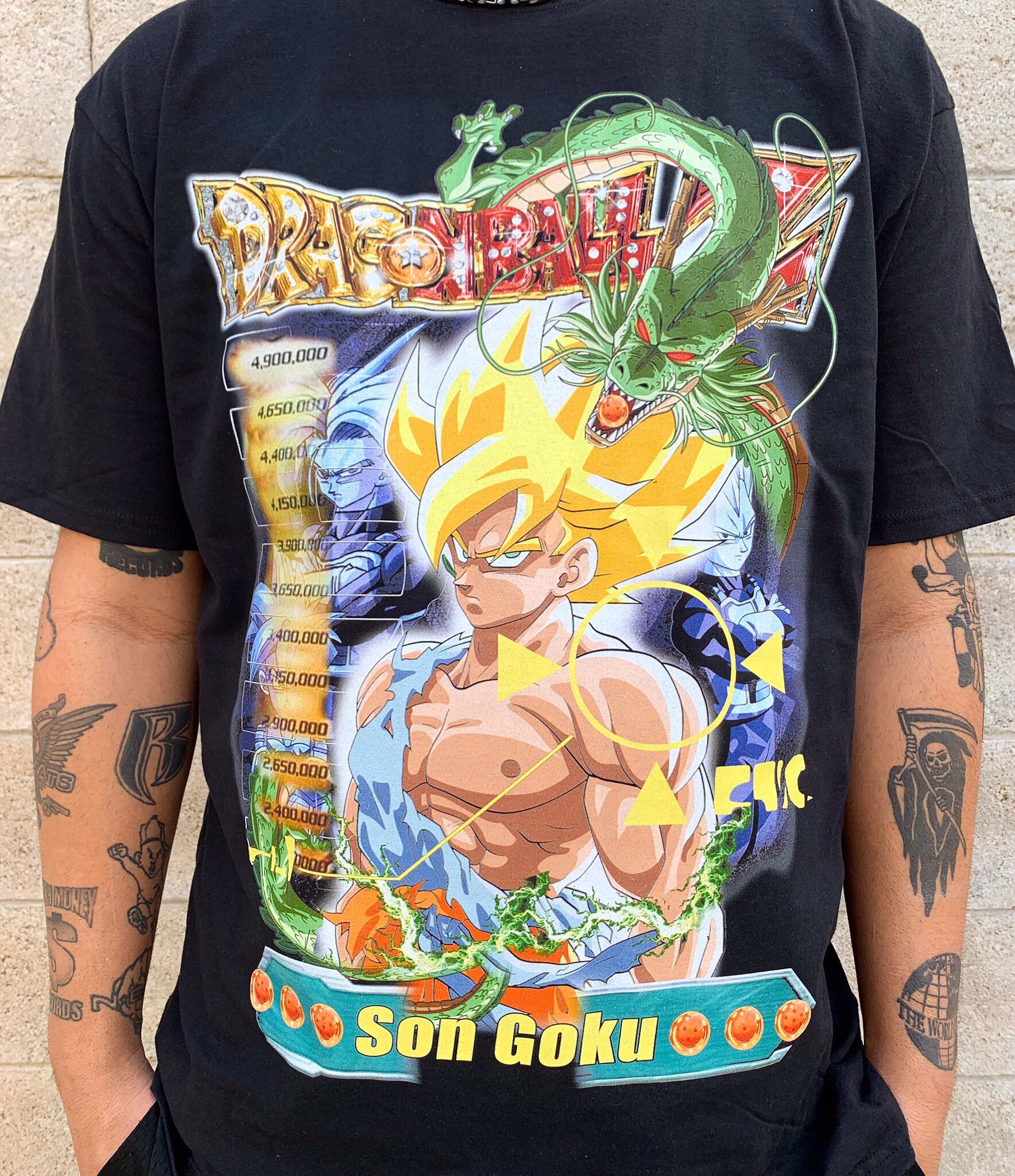 The list of Darien Bruze’s collaborators is extensive and filled with some of the most well-known artists of eras past and present. The likes of Drake, Future, Deathrow, Ja Rule, Cam’ron, and recently Billie Eilish have all tapped Bruze for custom merch. This collection of anime tees is just the most recent in the long line of the designer’s custom graphics. The teased tees include a black Exodia Yu-Gi-Oh! tee, a Dragon Ball Z tee featuring Son Goku, and two different Pokémon tees in white and black. Among a large group of characters the white Pokemon tee features Charizard, while the black tee’s graphic has Mewtwo as the focal point.
