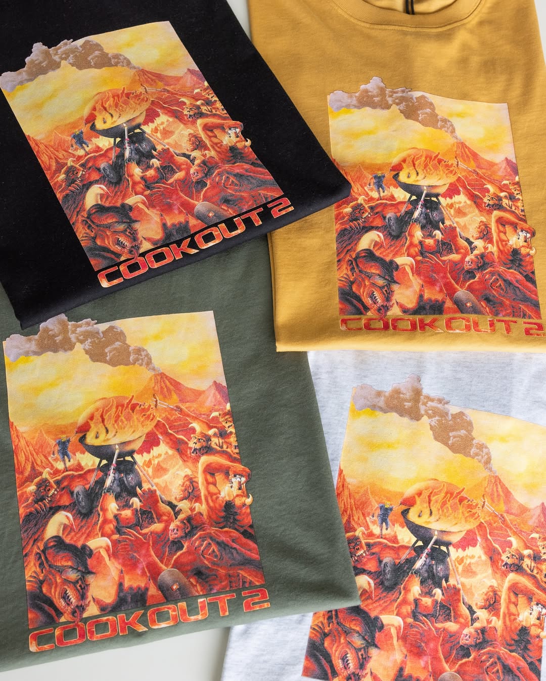 More video game references are found on the “Solid” tee (paying homage to Metal Gear Solid), the Splinter Cell-inspired “Splinter” tee featuring a cat wearing night vision goggles, and the Super Mario World-inspired “Classic Fuzzy” tee. This season also features the “Cook Out 2” tee, a DOOM-inspired sequel to Dime’s original Cook Out tee from a few years back.