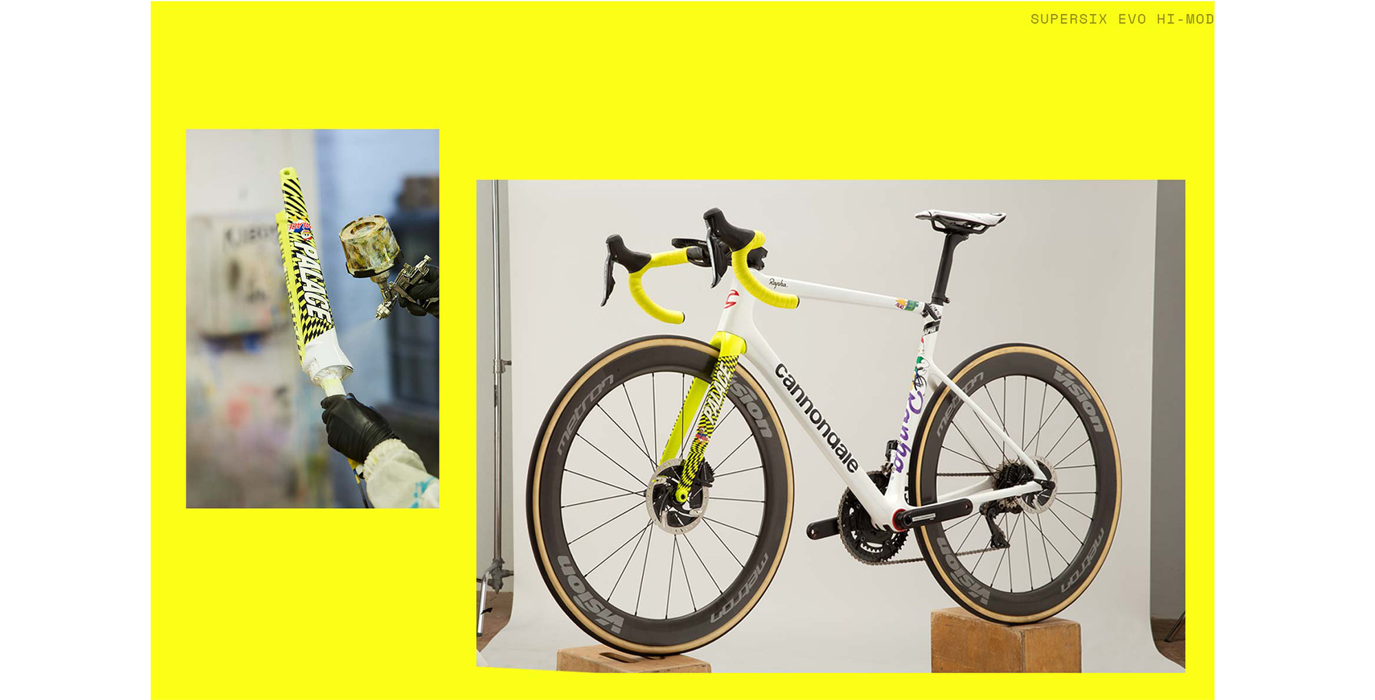 Palace went all out and also designed the team’s bikes, in collaboration with Cannondale, as well as the team’s helmets. The time trial helmets, in particular, are hilariously made to look like the head of a duck, with big bulging eyes and a yellow bill.