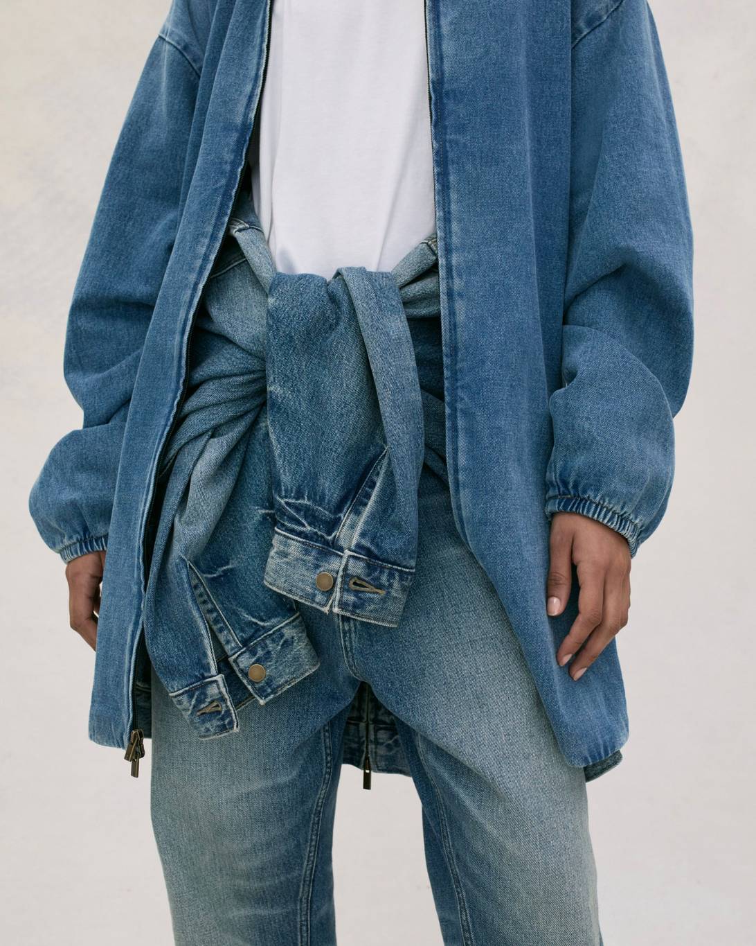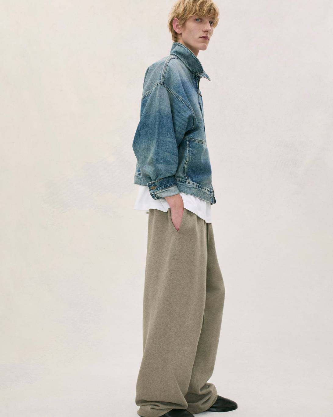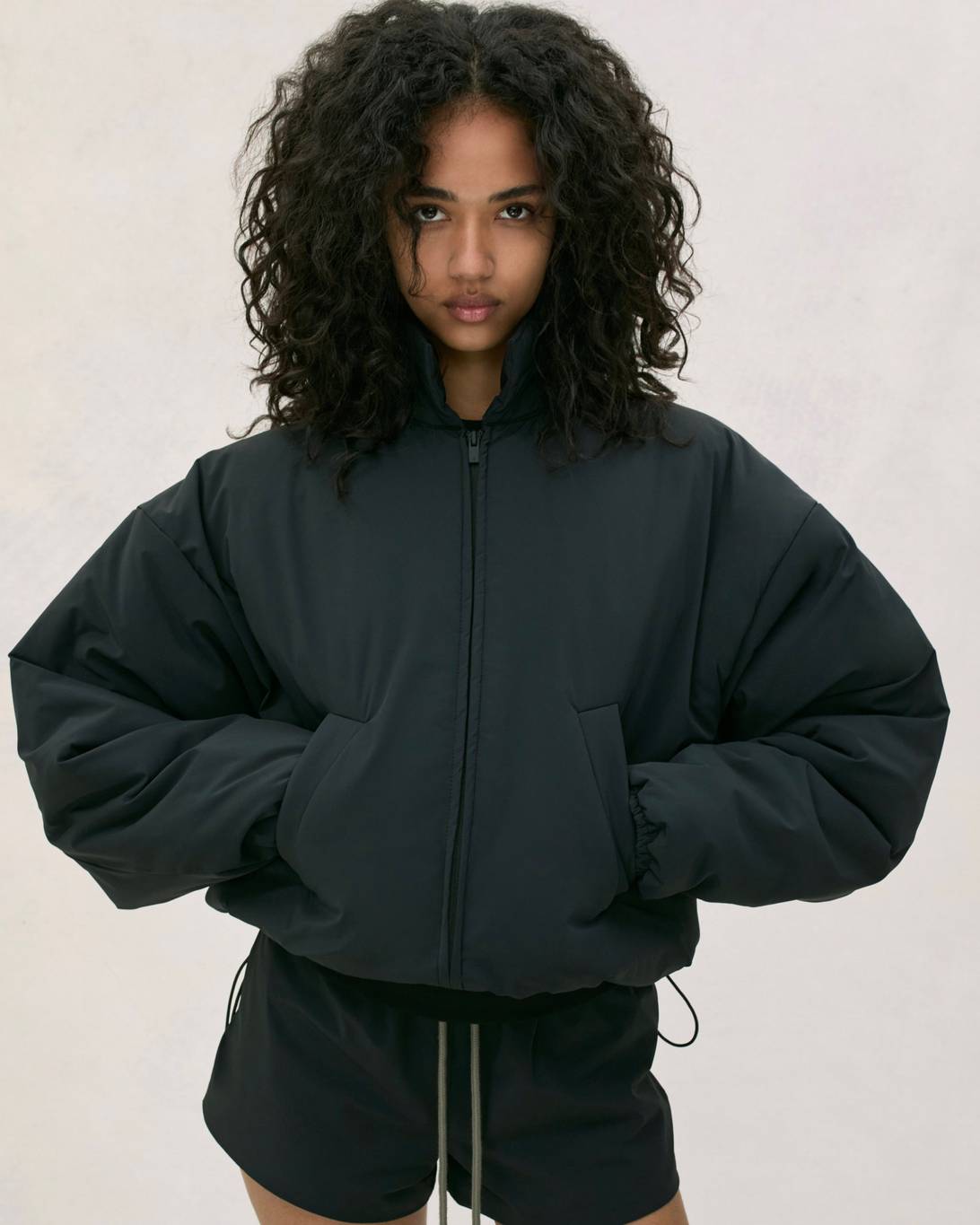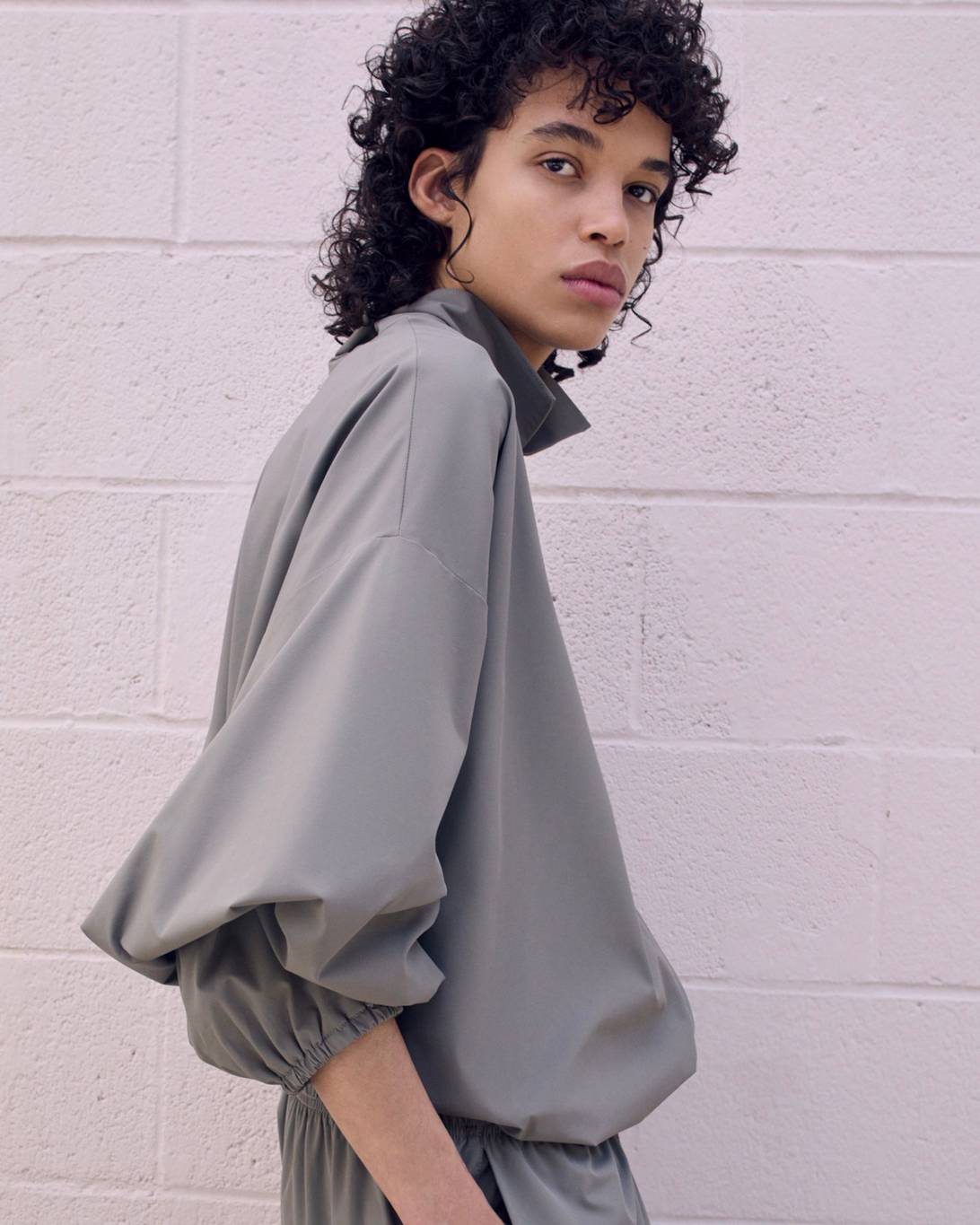 Vince Staples makes a guest appearance in the lookbook, rocking this season’s hoodie in Heather Grey, layered atop white tank top and tee. He’s also wearing the cotton twill lounge pant in Mink and a pair of Fear of God Moc Knit Lows.