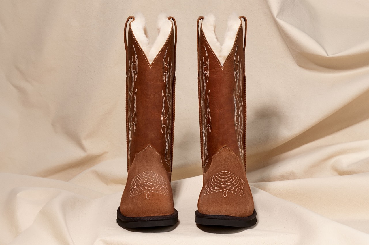 The cowboy-inspired Stitched Boot is the star of the new offering, featuring a brown upper made from sourced regenerative leather and adorned with embroidery on the shaft and forefoot. Another boot is constructed from recycled denim, each pair featuring a one-of-one patchwork design. Rounding out the offering is the military-inspired Canvas Boot and Canvas Tasman, each made from surplus canvas bags.