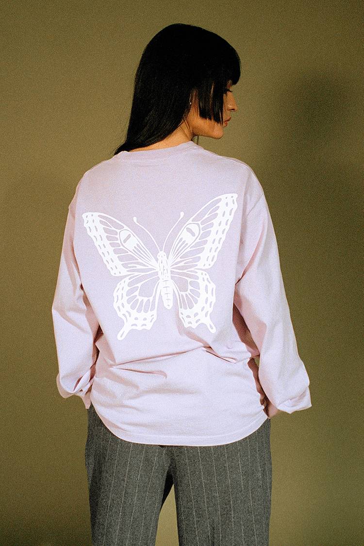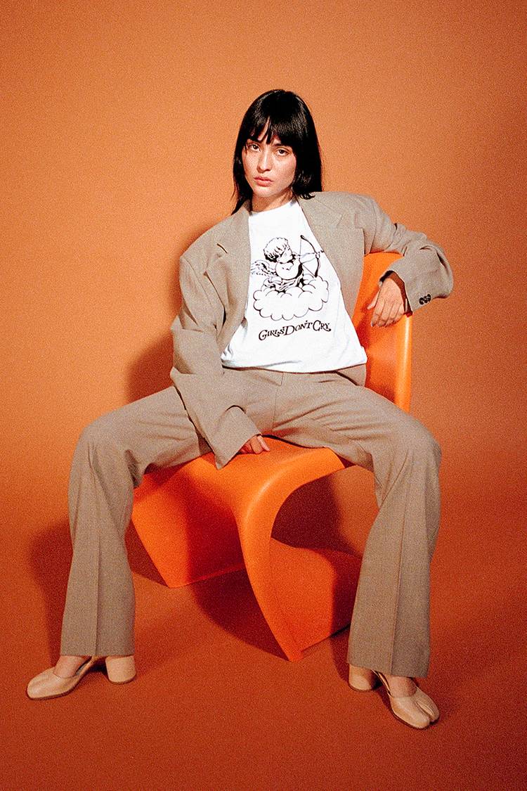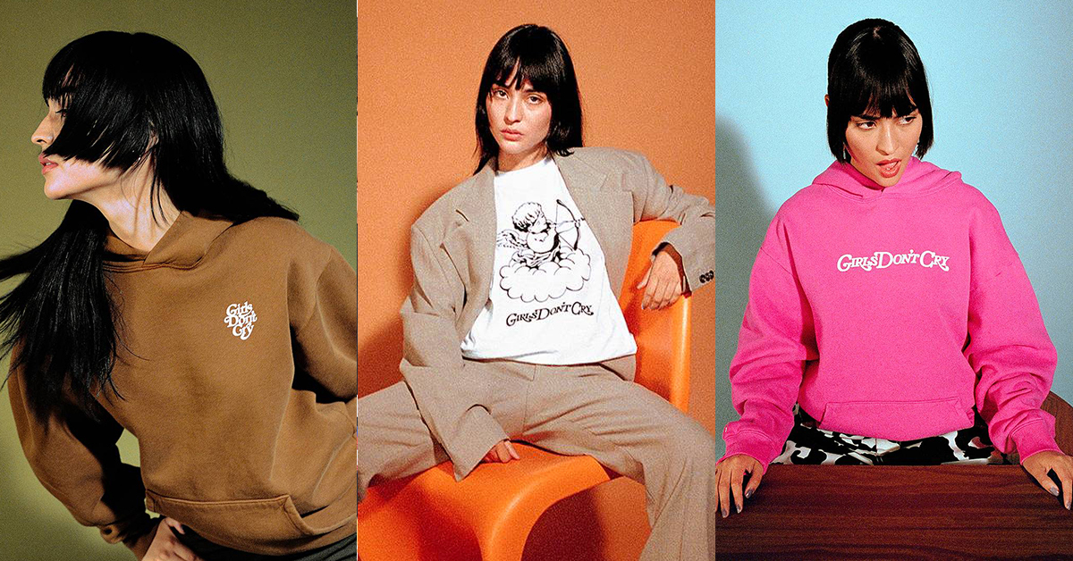 The signature ‘Girls Don’t Cry’ motif sweatshirts make their return, a clear fan-favorite, releasing in shades of both pastel and hot pink, a calming baby blue, and neutral tones of brown and dark grey. Minimalist butterfly and cupid graphics can be found across the tees. A PVC tote carry bag finishes off the collection, displaying a ‘See You Yesterday’ slogan.