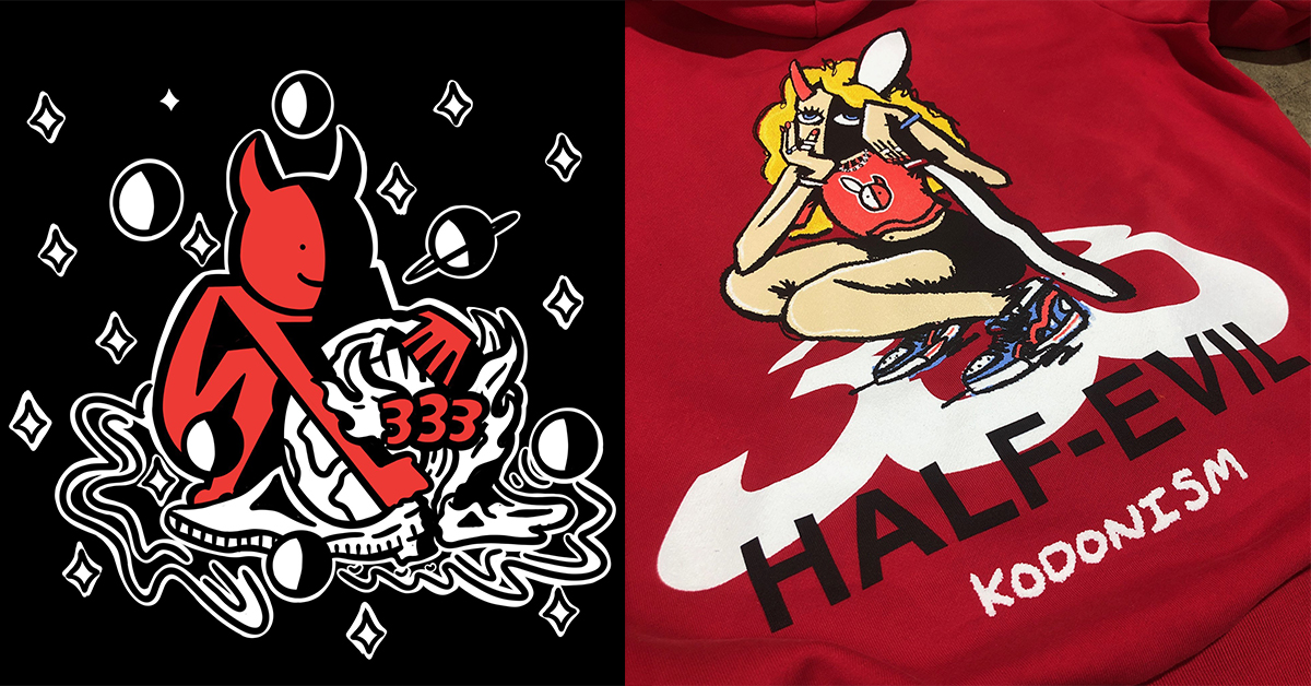 Update (07/16/20): Half Evil x Kodone finally launches this Saturday, July 18th exclusively online via Half Evil’s website at 3:30PM CT. No Chicago in-store release as COVID cases are back on the rise. Check out images of the tees and accessories below, as well as the full price list.